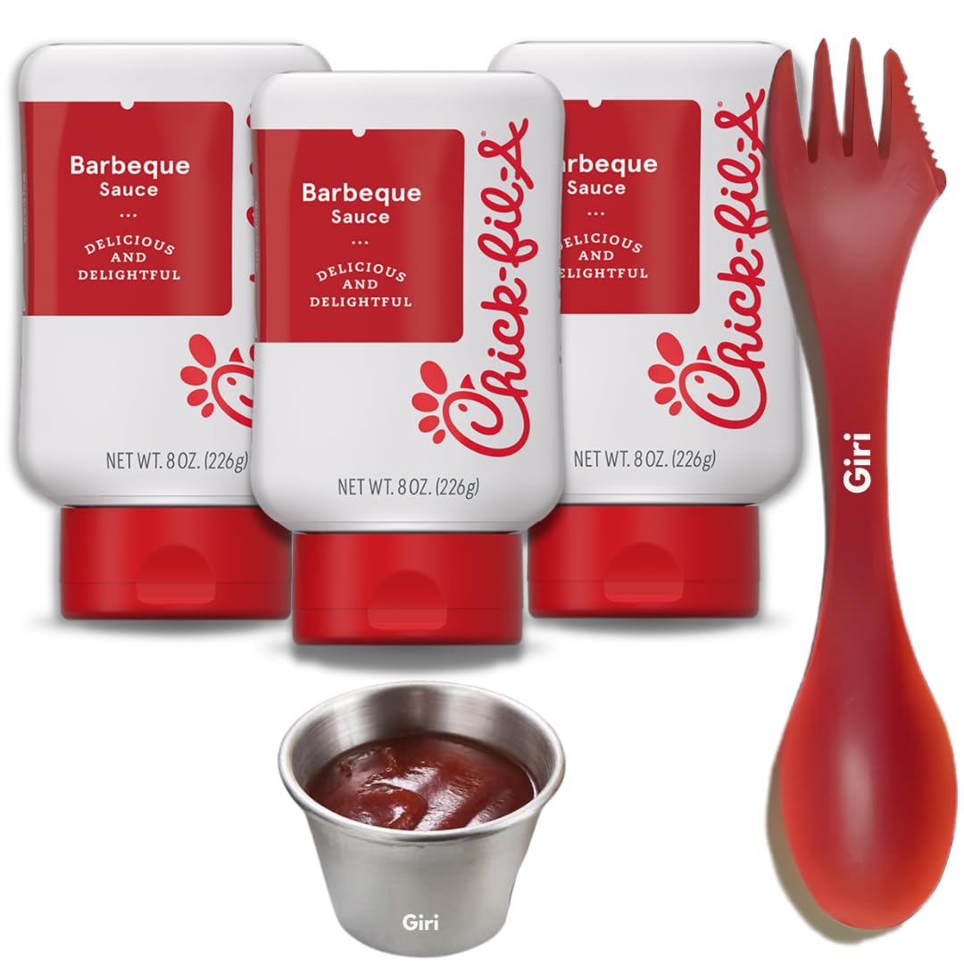 This is a bundle of 3 items, including: Barbecue Sauce 8 oz. Squeeze Bottles (3-pack) Giri Plastic Spork 3-in-1 (7 Inch) Giri Stainless Steel Condiment Sauce Cup (2.5 oz) Barbecue Sauce: Enjoy 3-pack of signature 8 oz. Barbecue sauce bottles, perfect for dipping, drizzling, or using as a marinade. G