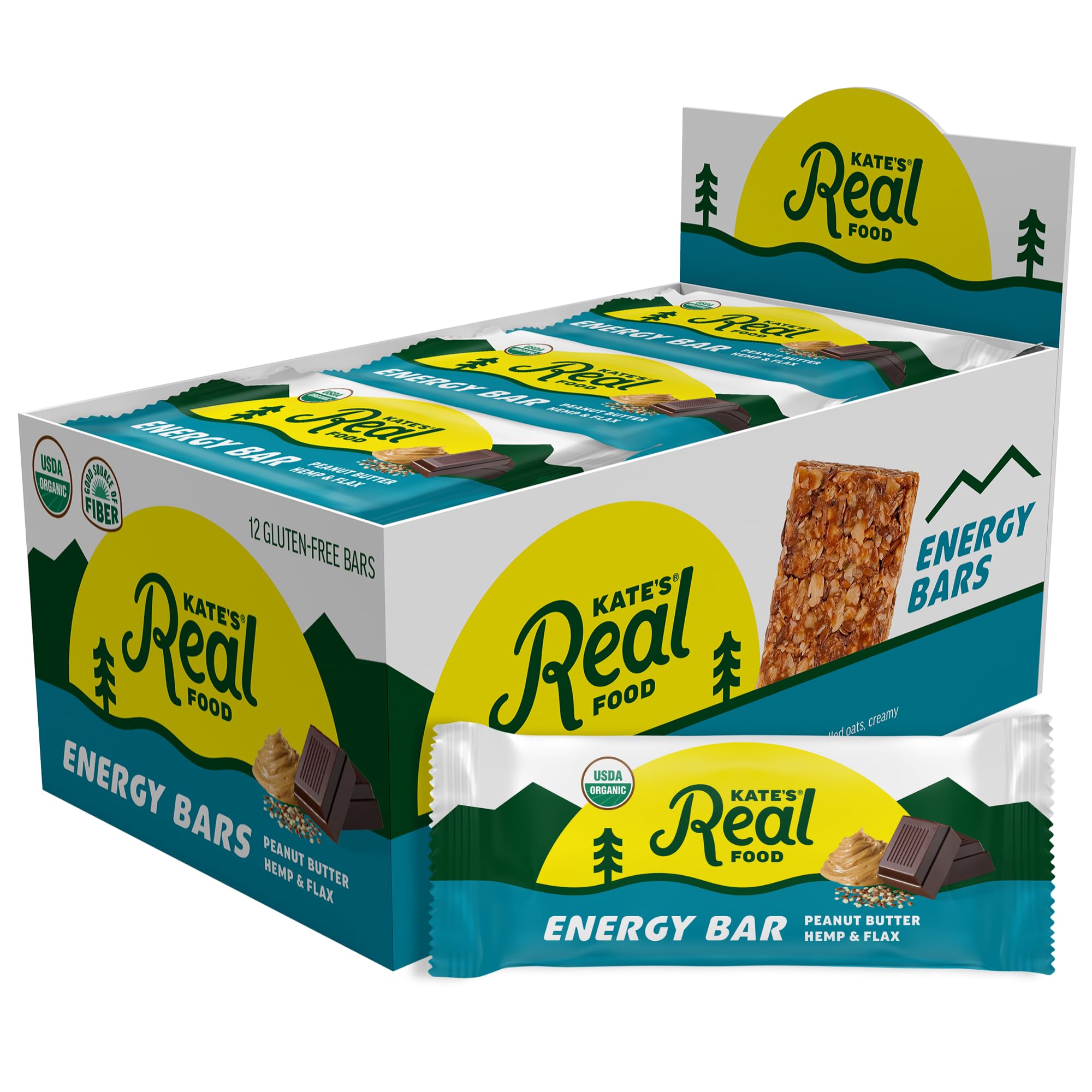 Kate’s Real Food Organic Granola Bars - Peanut Butter Hemp & Flax (2.2 oz, Pack of 12) - Organic Energy Bars Made with Gluten Free Oats - Non GMO, Soy