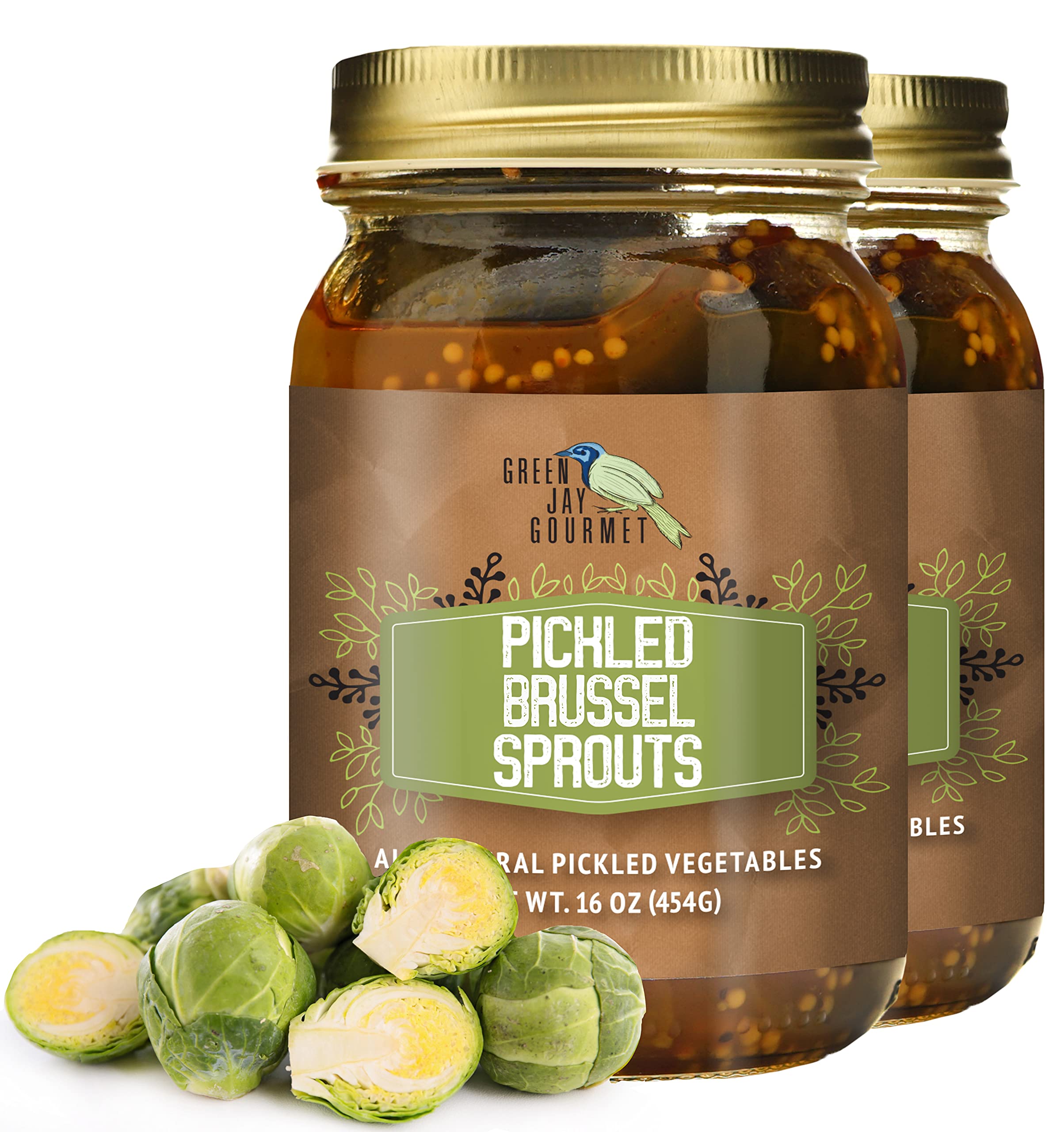Green Jay Gourmet Pickled Brussel Sprouts in a Jar - Fresh Hand Jarred Vegetables for Cooking & Pantry – Home Grown Pre-Prepared Pickled Brussel