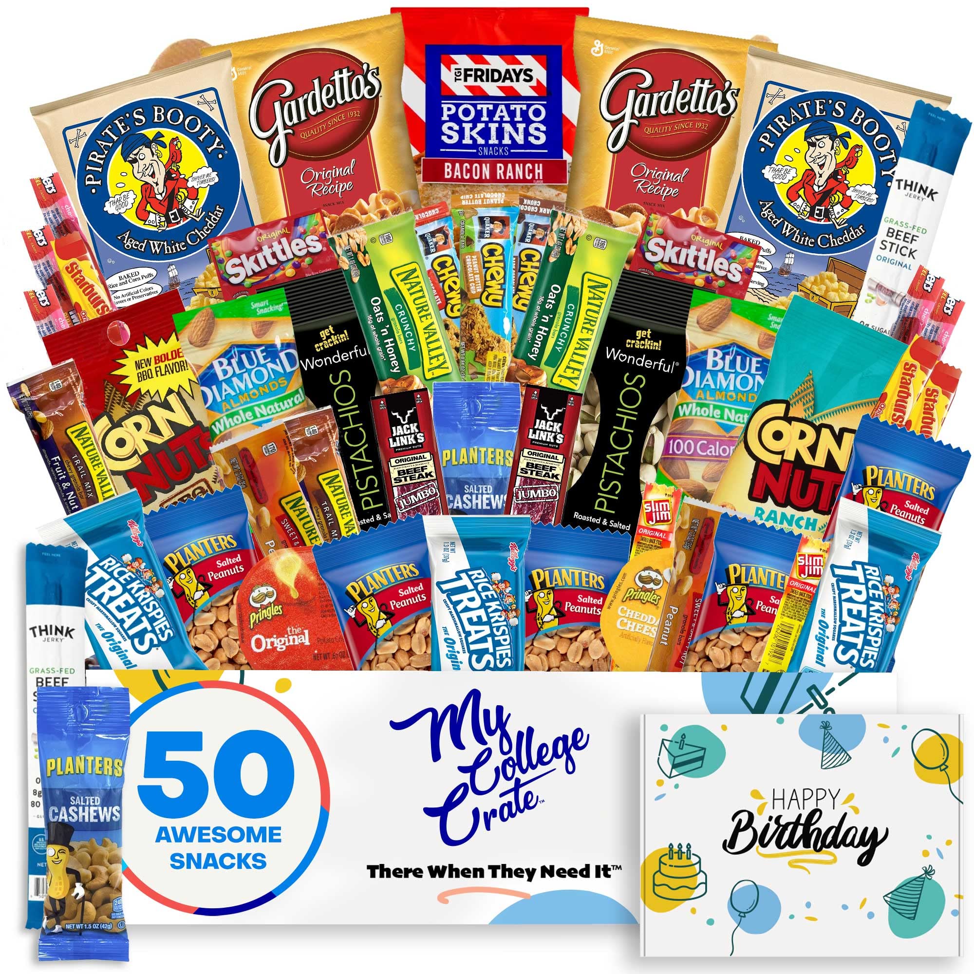 Birthday Care Package (50 Count) Snacks Food Cookies Bar Chips Party Variety Gift Box Pack Assortment Basket Bundle Mix Treat College Students Kids