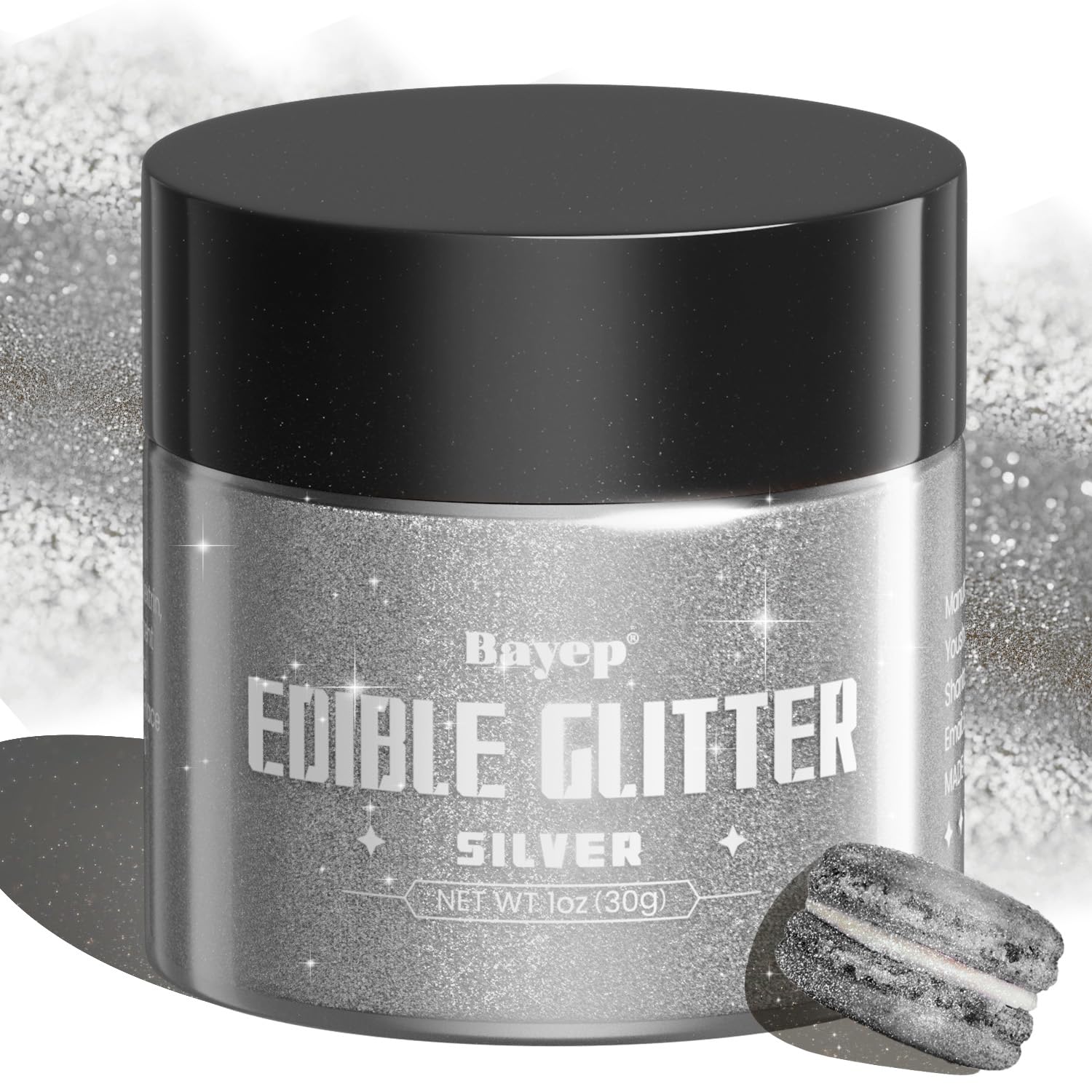 Shimmer Silver Edible Glitter For Cocktails, 30g Edible Glitter for Drinks, Luster Dust Edible for Cake, Wedding Birthday Holiday Party Valentines