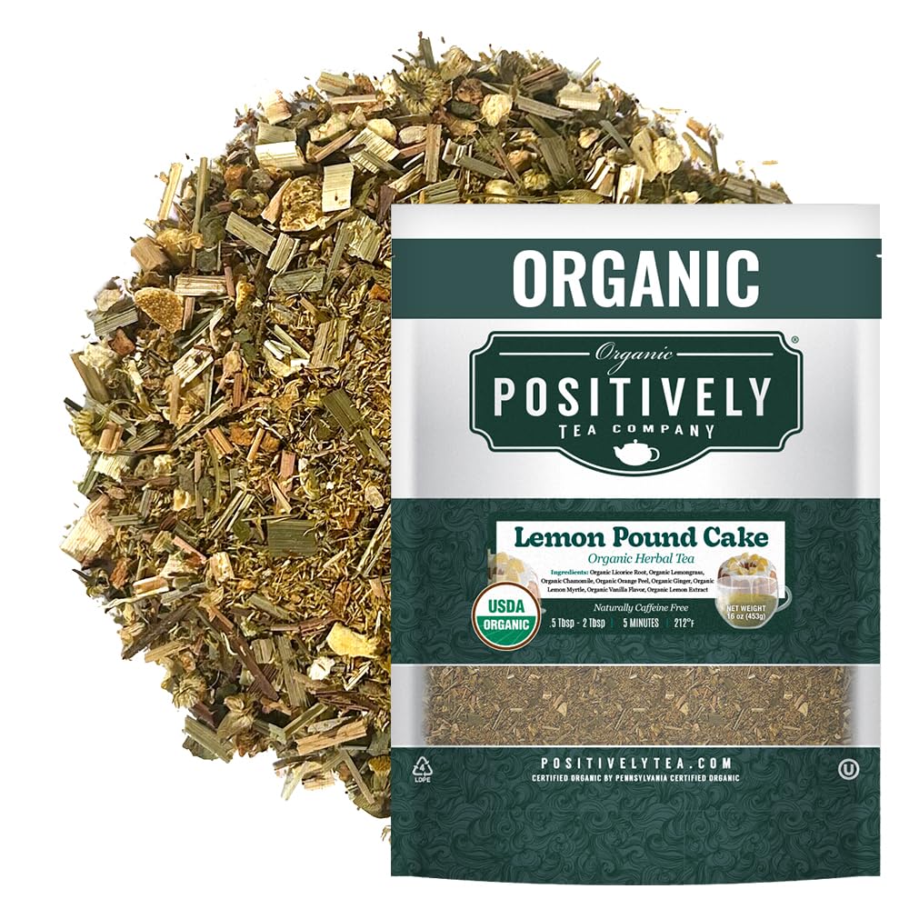 Organic Positively Tea Company, Lemon Pound Cake, Herbal Tea, Loose Leaf, 16 Ounce