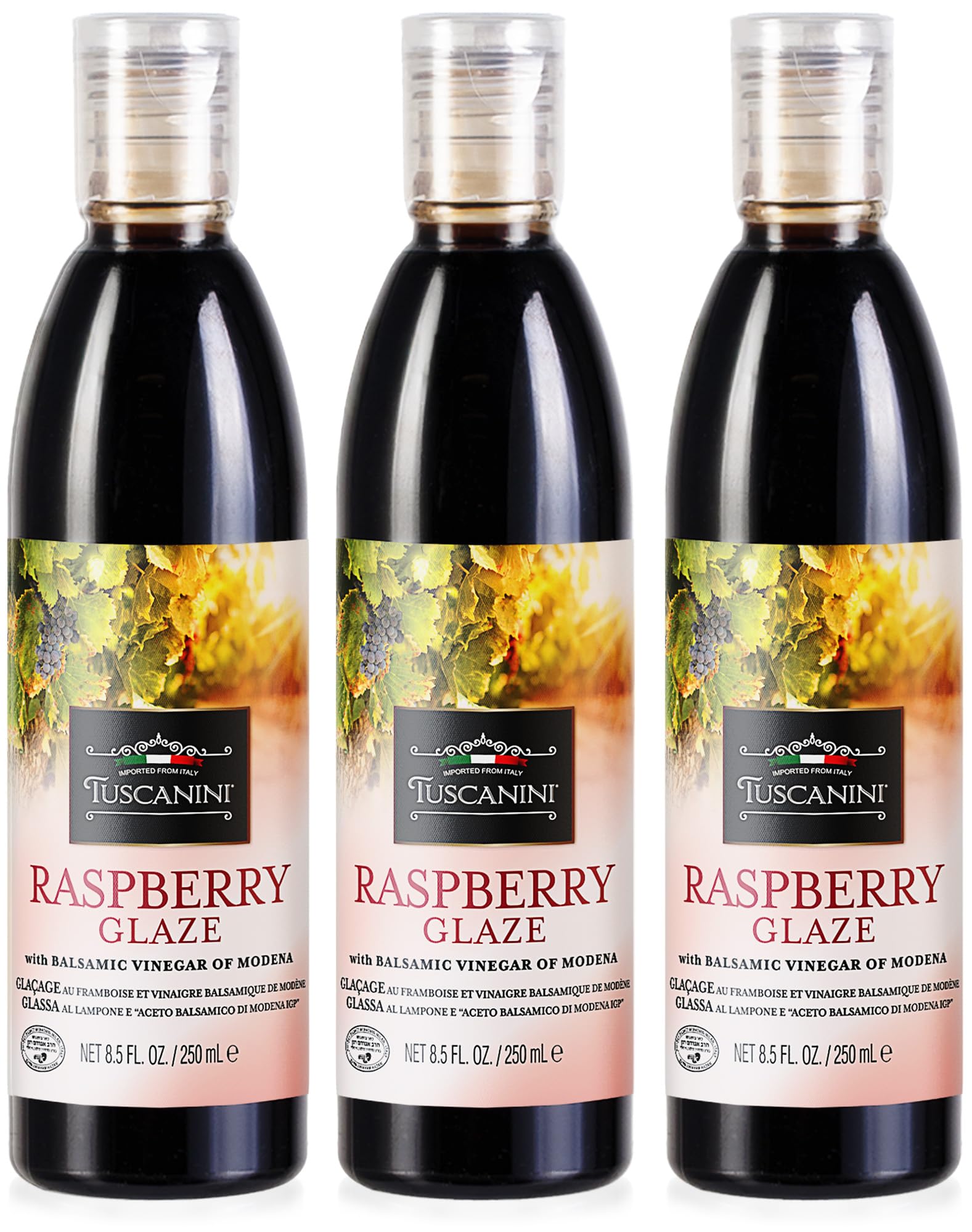Tuscanini Raspberry Balsamic Glaze Made with Kosher Balsamic Vinegar of Modena Italy, 8.5 oz (3 Pack) | Balsamic Reduction | Great for Salad Dressing,