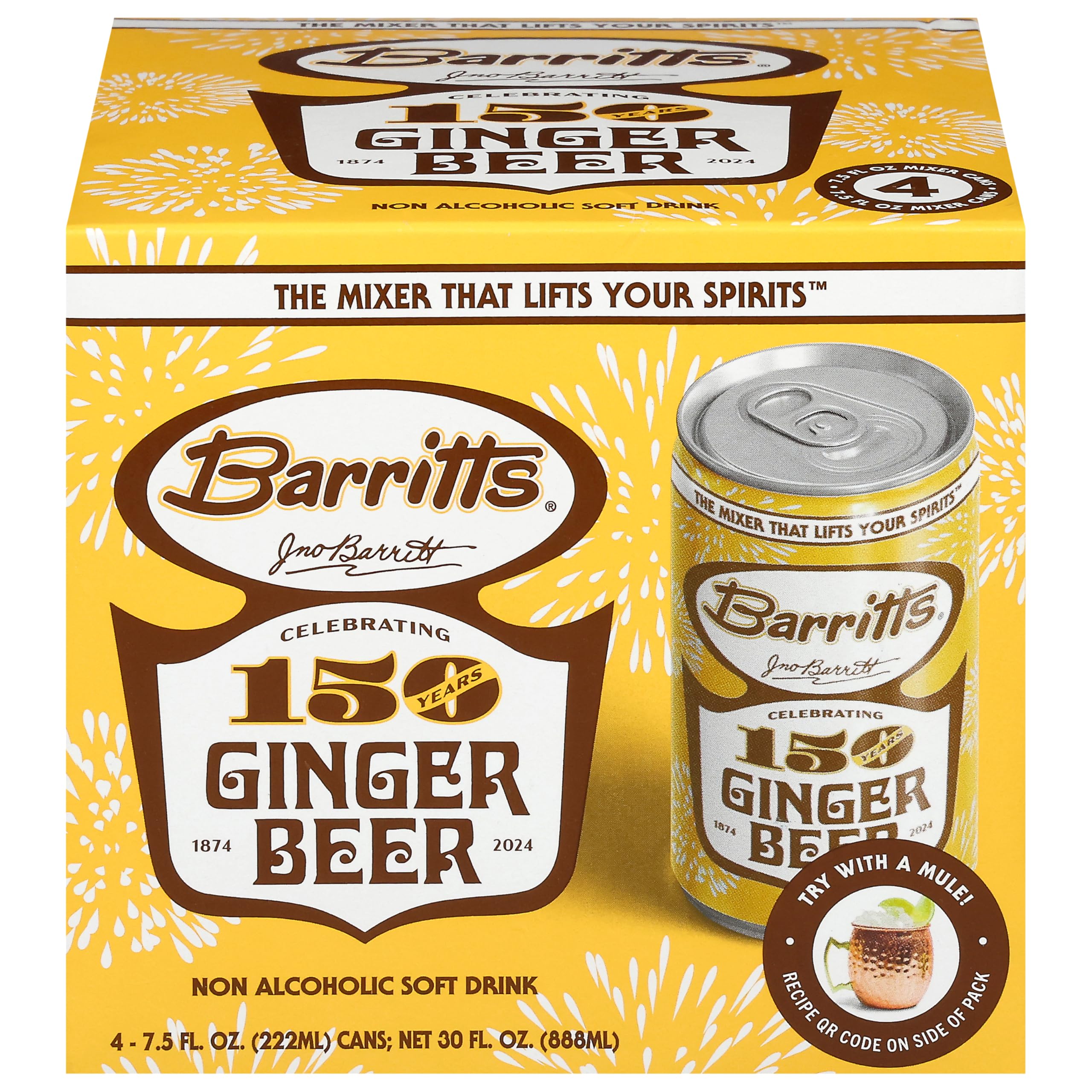 Barritts, Non Alcoholic Soft Drink Ginger Beer, 4 Pack, 30 Fl Oz