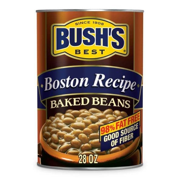 Stock your pantry with 28 oz recyclable cans of Bush’s Boston Recipe Baked Beans Bush’s Boston Recipe Baked Beans are tender navy beans slow-simmered in a rich blend of molasses, brown sugar, pork and spices Bush’s Baked Beans offer a perfectly sweet side to make your savory hot dogs and hambu