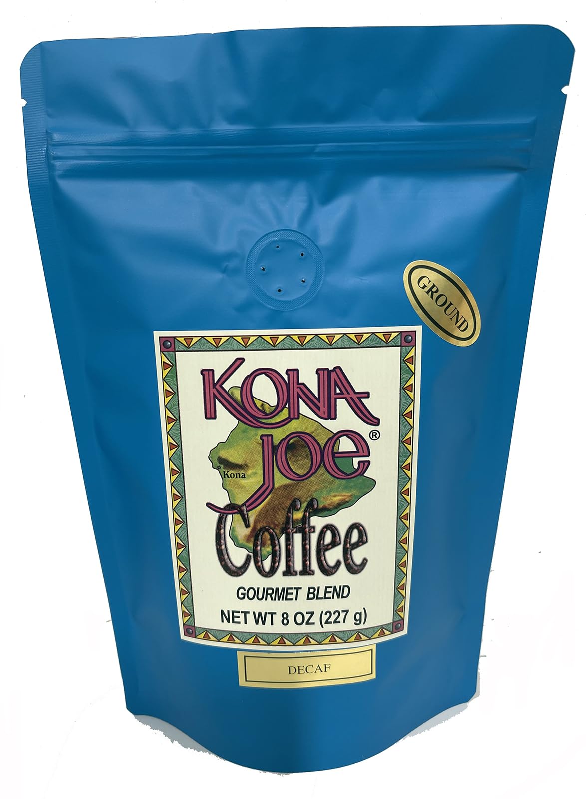 Kona Joe Gourmet Decaf Coffee Blend, Medium Roast Ground Coffee (8 oz)