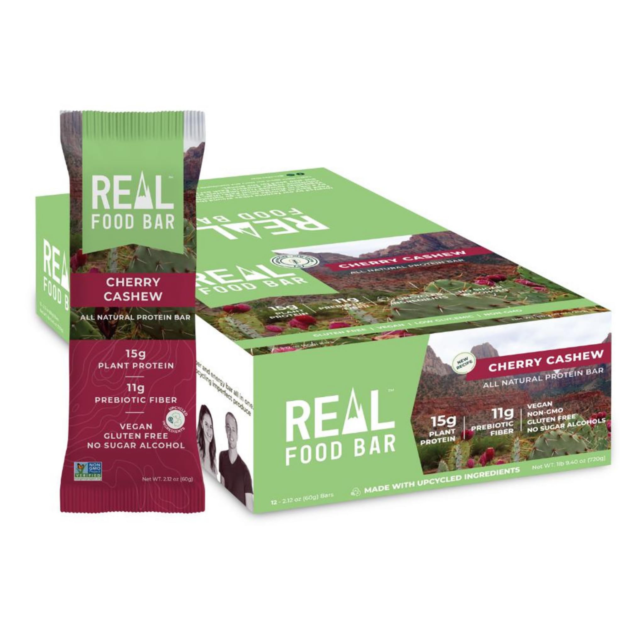 Real Food Bar – Plant based Protein Bar, Cherry Cashew, 15g Protein, 12 Bars | High Energy, Organic Ingredients, Gluten Free, Non GMO | All Natural