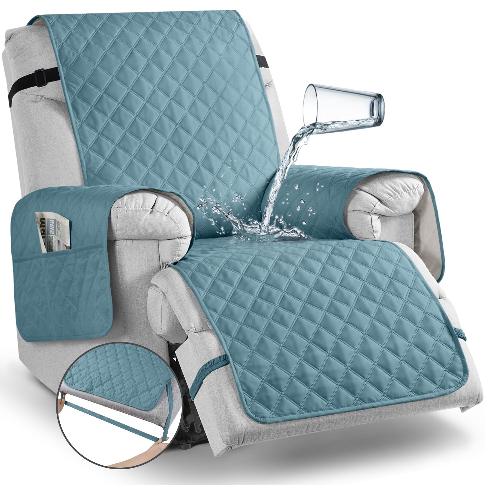TAOCOCO Waterproof Recliner Chair Covers, Pet Cover for Large Recliner Chair with Elastic Straps, Washable Chair Seat Cover Reclining Chair Cover