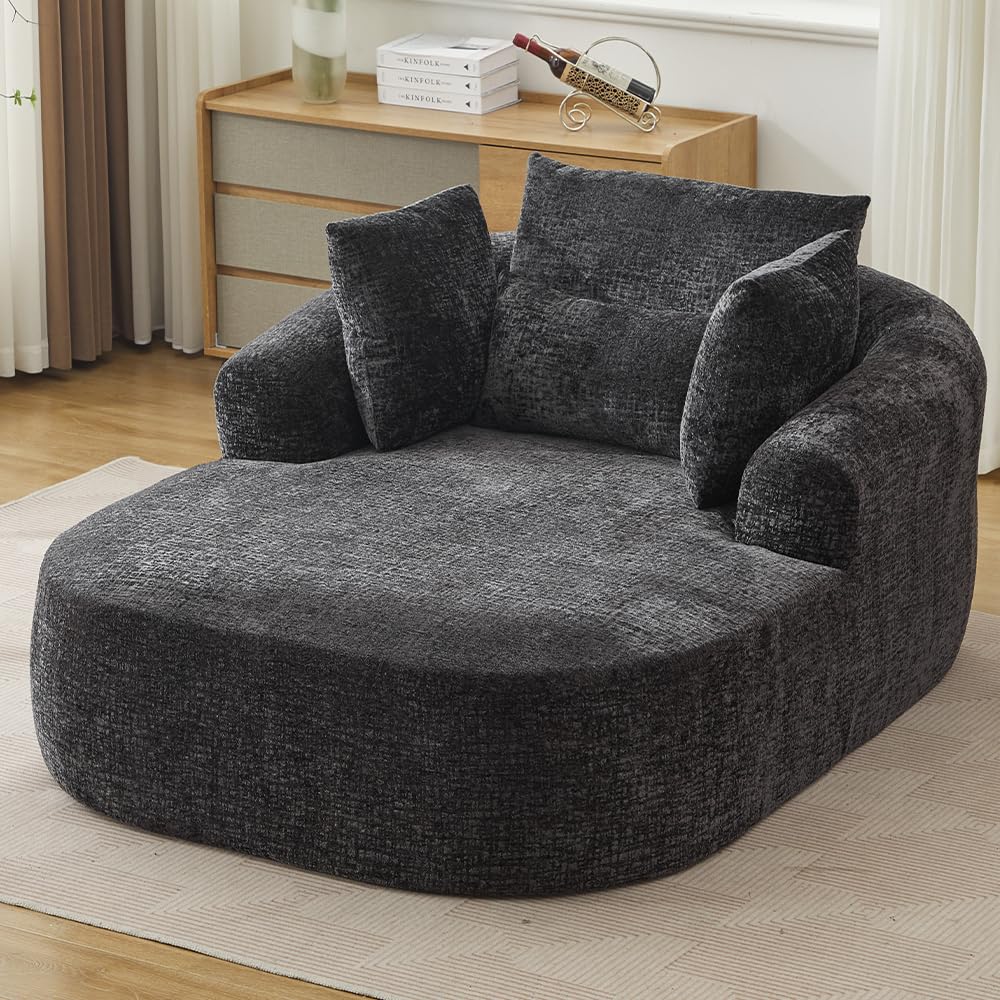 Five Green Oversized Chaise Longue Chair Indoor, Modern Upholstered Chenille Deep Seat Sofa Bed with Throw Pillows and Armrests, Sleeper Sofa Couch