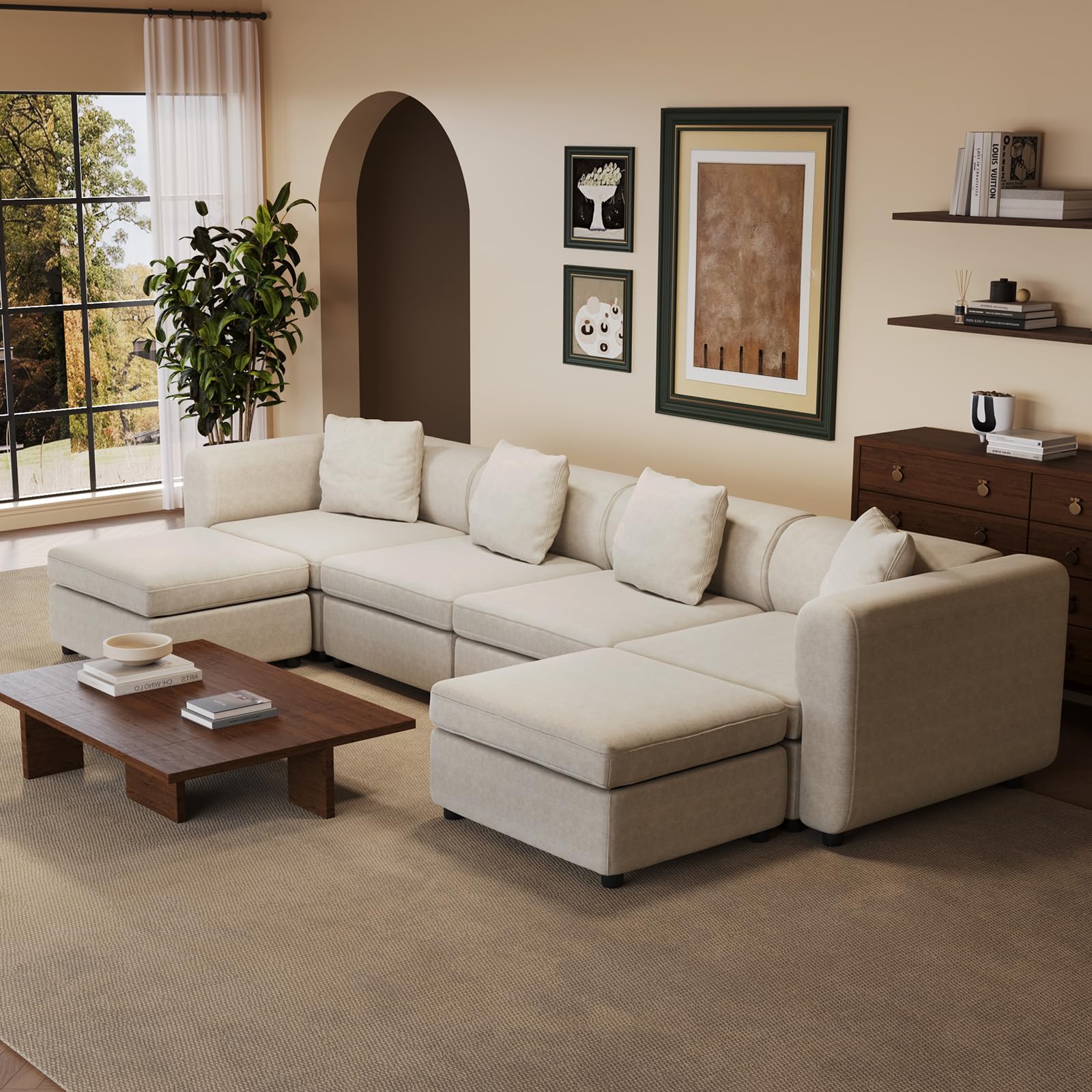 Flexible Arrangement Freedom: The QEZEOM oversized modular sectional sofa offers unrivalled flexibility with its rearrangeable design. Tailor it to fit your space perfectly, whether you prefer a classic L-shape or a spacious U-shape setup, providing ample seating for 6 people comfortably. Innovative
