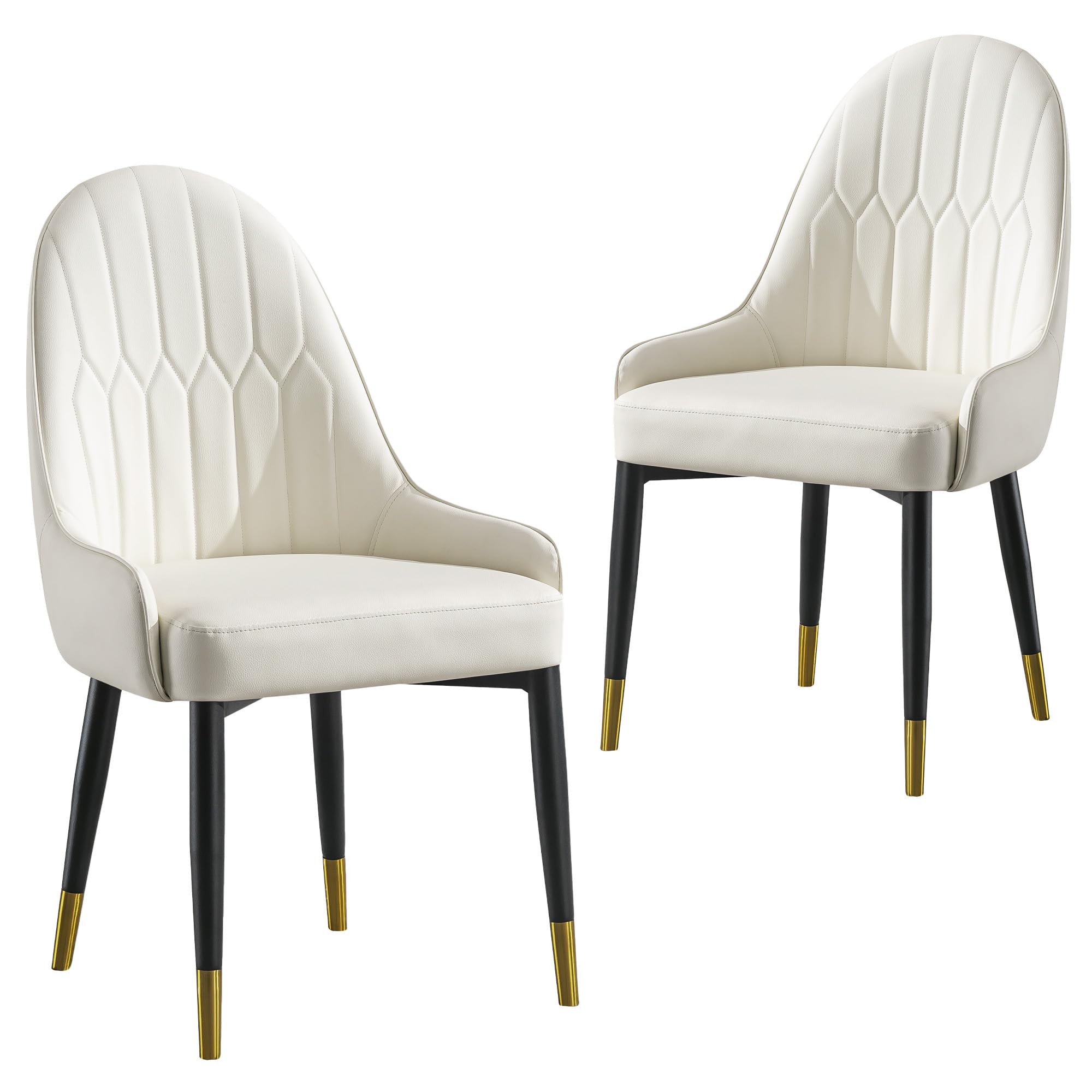 AF ARTISAN FURNITURE White Dining Chairs Set of 2 with High Backs Mid Century Modern Kitchen Dining Room Chairs PU Faux Leather Upholstered Large