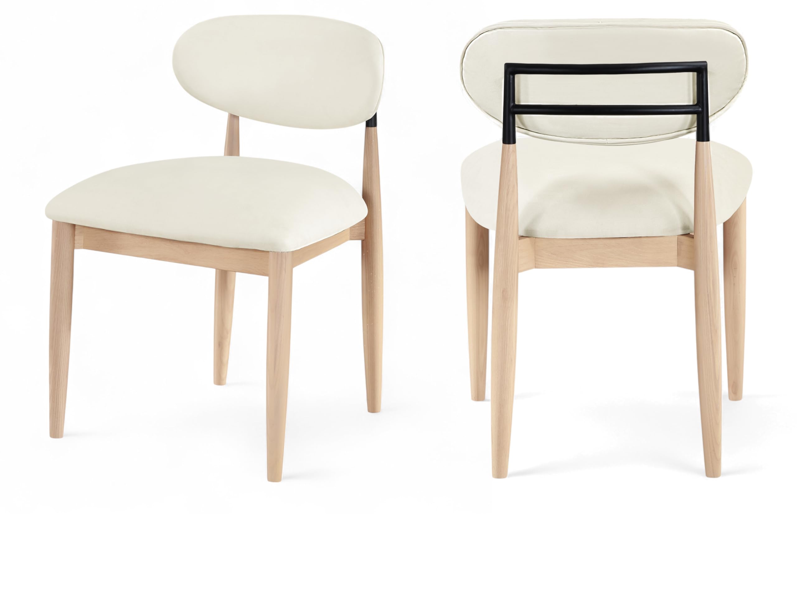 Meridian Furniture 11019Cream-SC Riccio Collection Modern | Contemporary Dining Side Chair with Cream Vegan Leather, Natural Ash Wood, Black Iron, 21"