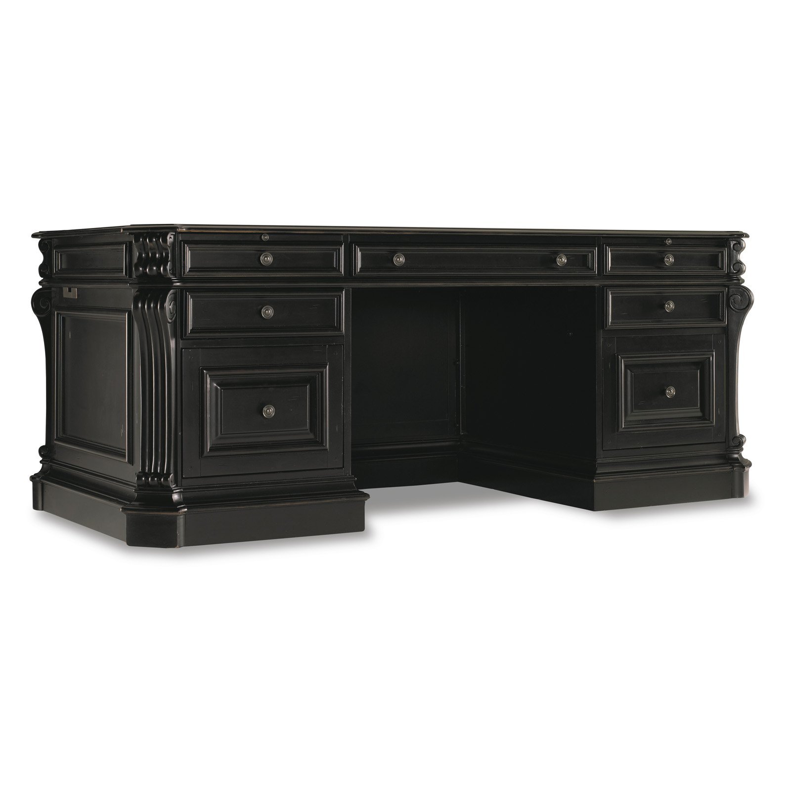 Hooker Furniture Telluride 76" Executive Wood Desk with Leather Top in Black