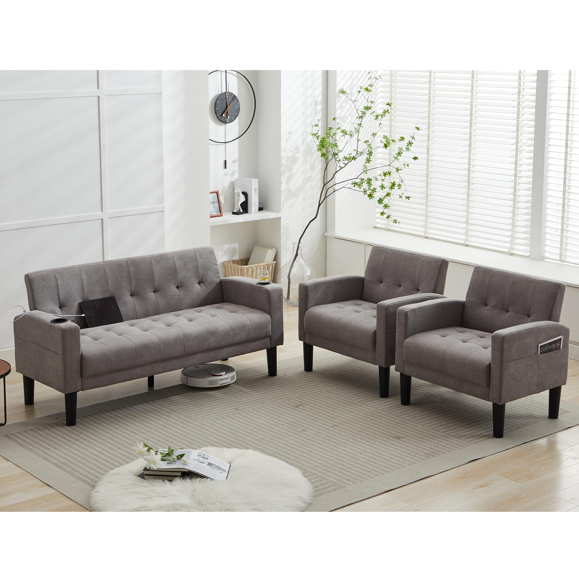 TYBOATLE Sofa Couch, Living Room Furniture Sectional Sofa Sets 3 Pcs, Tufted Mid-Century Loveseat w/USB, Cupholders & Comfy Single Sofa for Small