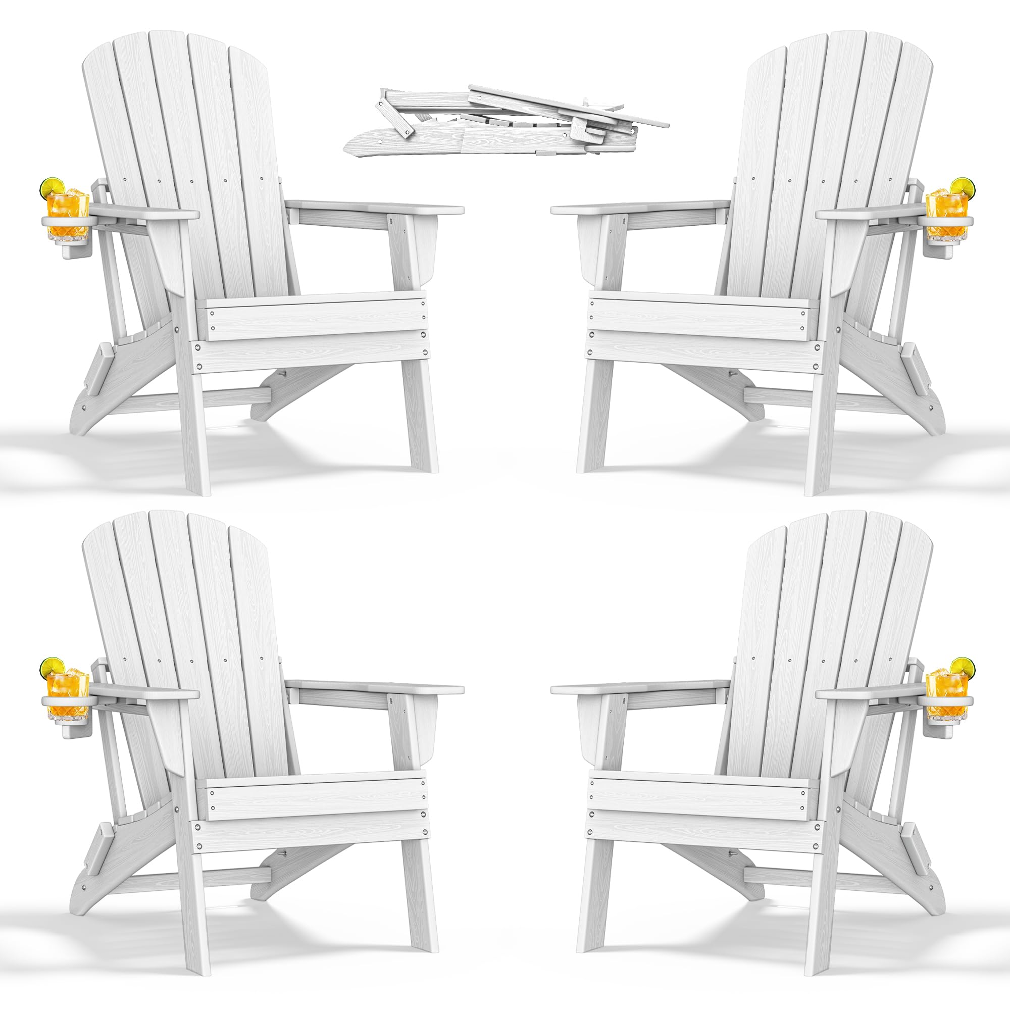 nevilywood Folding Adirondack Chair with Cup Holder Set of 4, HDPE Patio Chairs,All-Weather Outdoor Chairs for Backyard, Deck,Fire Pit-White