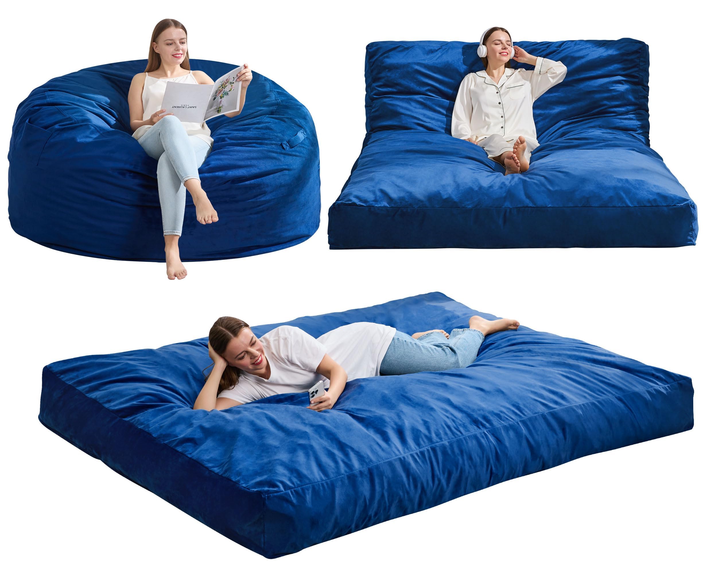 Hobestluk Giant Bean Bag Chair Bed for Adults, Large Bean Bags with High-Density Foam Filling, Convertible Big Sofa Bed Couch for Living Room, Bedroom