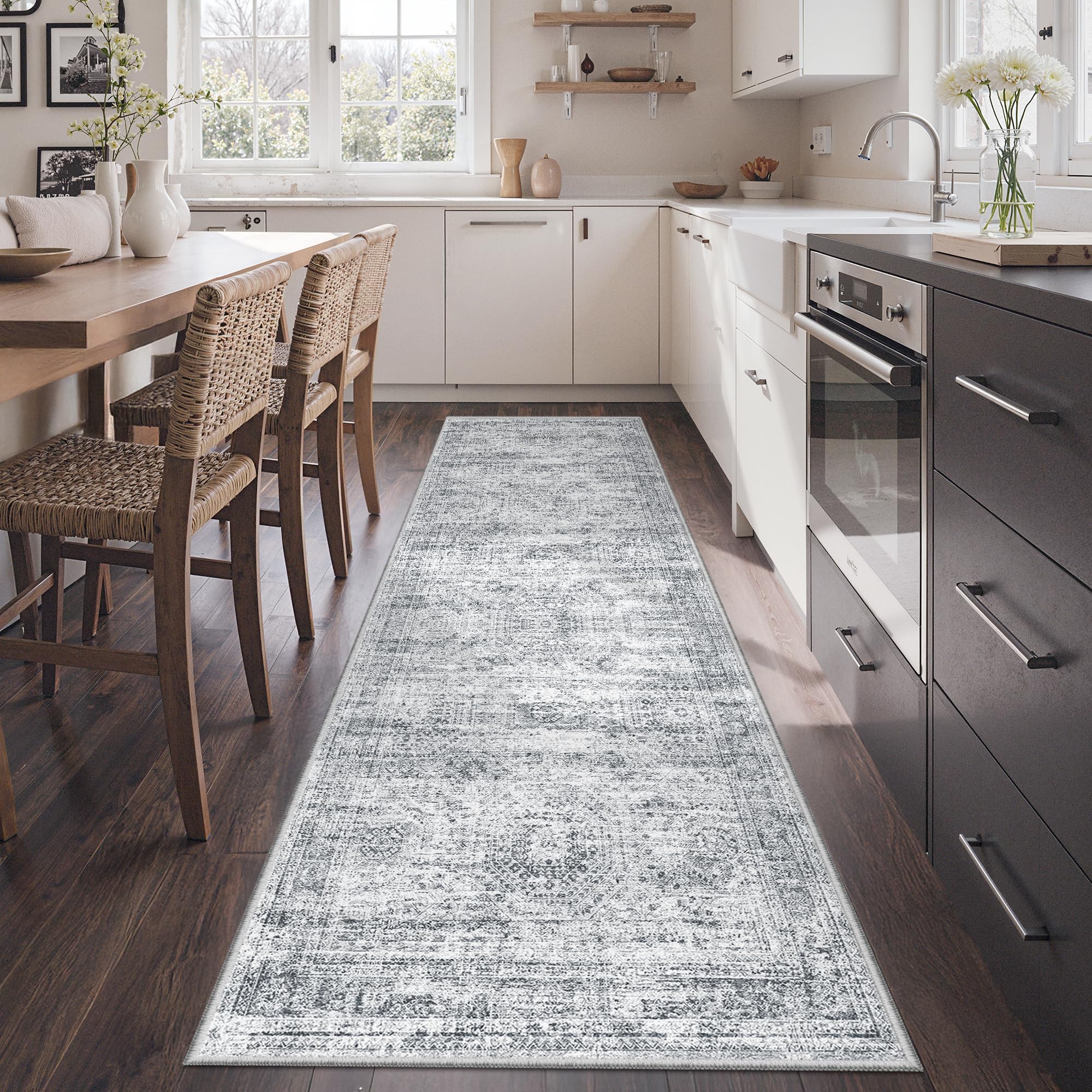 Ultra-thin & Safe Kitchen Rugs: Our entryway rug is a super cozy crystal pile that is not only super soft, but also fade resistant.The 0.144-inch thick, low-pile runners for hallways is easy to place in entryways and under furniture, and won't block doorways Easy To Care Washable Runner Rug: This ki