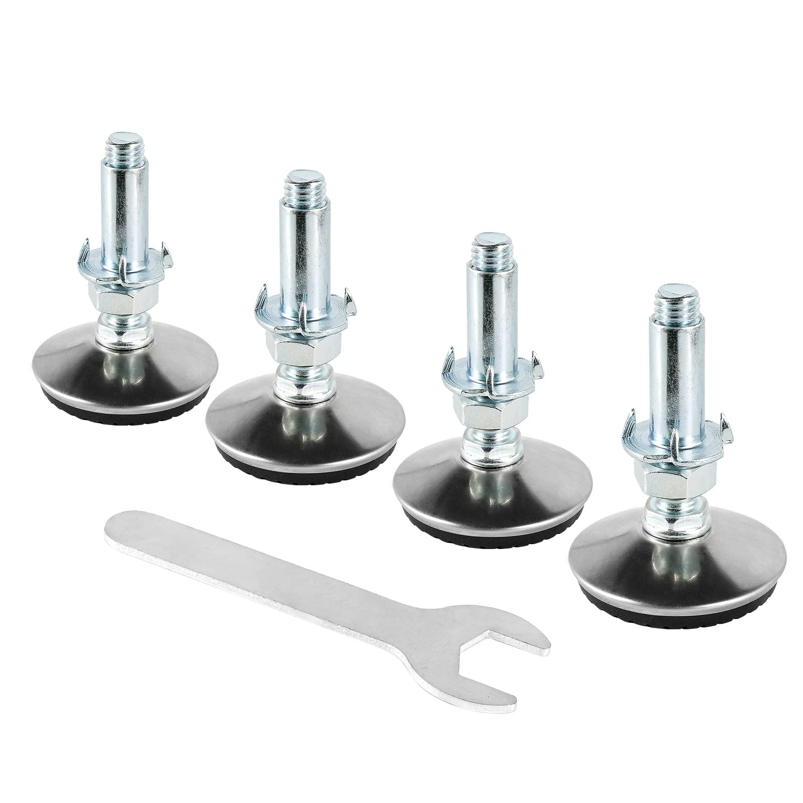 *Purchase Guiding* 4 x M10 Silver Furniture Leveling Feet, 4 x M10 T Nuts for inserting under the furniture legs, 4 x Lock nuts for locking and stabilizing the leveler feet, 1 x Wrench as installation aid. *Heavy Duty & Adjustable* After installing the leveling feet, the height of the furniture can