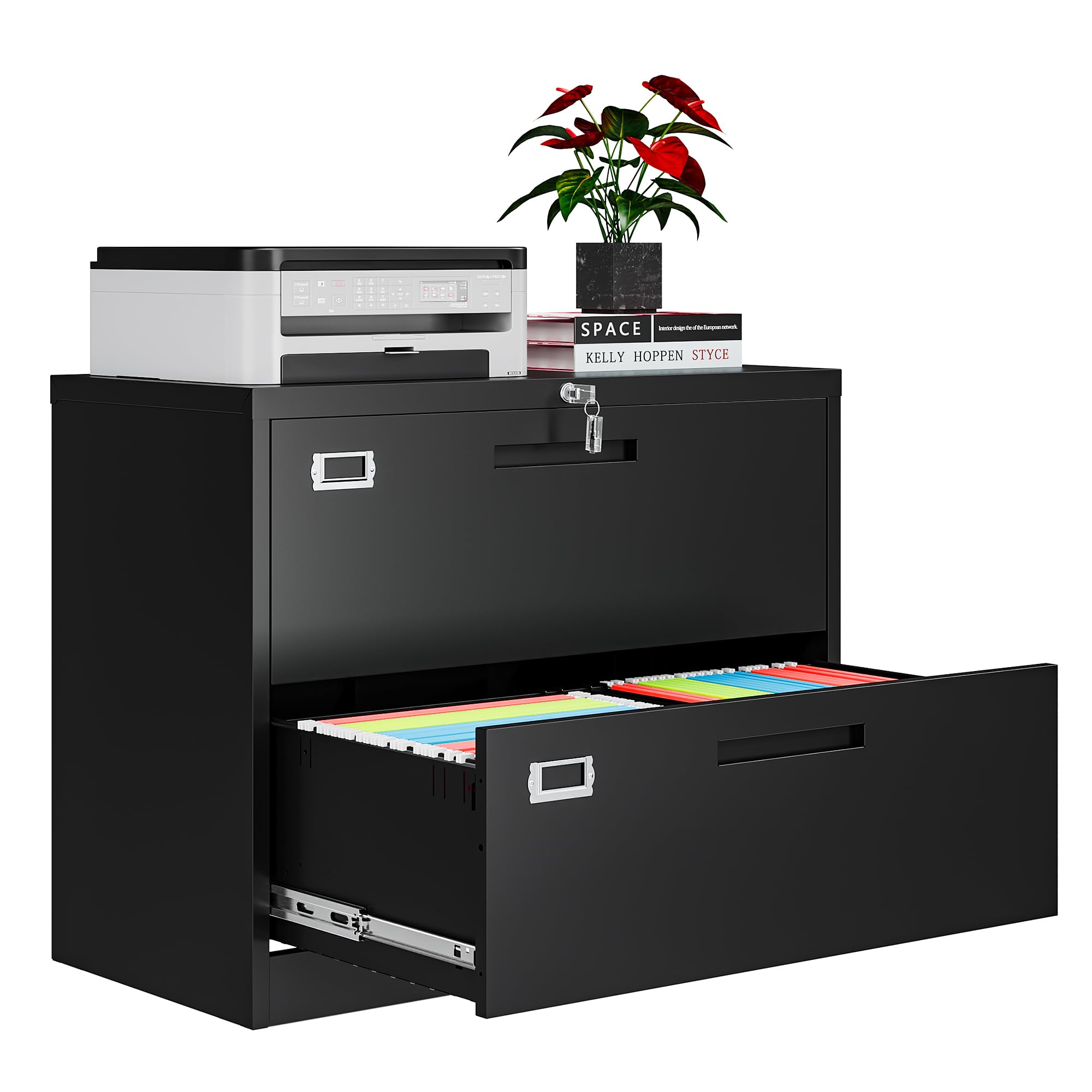 AFAIF 2 Drawer File Cabinets for Home Office, Metal Filing Cabinet with Lock, Black Locking File Caninet Two Drawer, Office Storage Caninets Steel