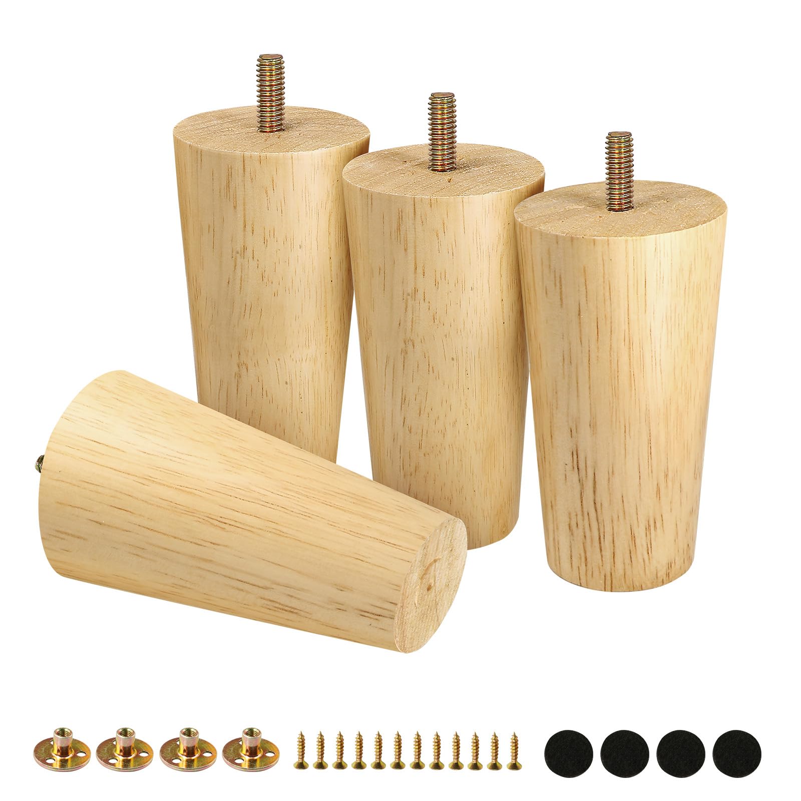 FoDau770 Rubber Wood Furniture Legs 4 Inches, Straight Tapered Wood Feet Mid Century Sofa Legs Set of 4, 5/16" UNC Furniture Feet Replacement Parts