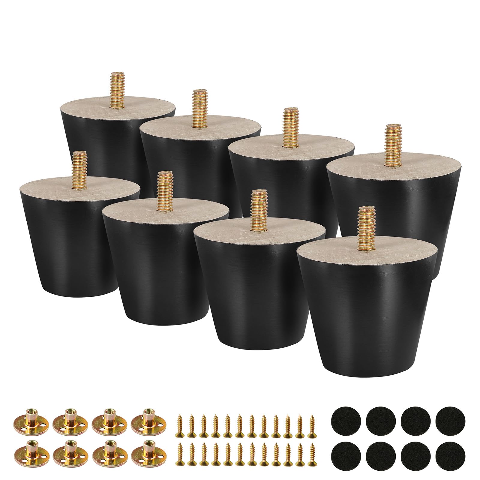 FoDau770 Black Rubber Wood Furniture Legs 2 Inches, Straight Tapered Wood Feet Mid Century Sofa Legs Set of 8, 5/16" UNC Furniture Feet for Cabinet
