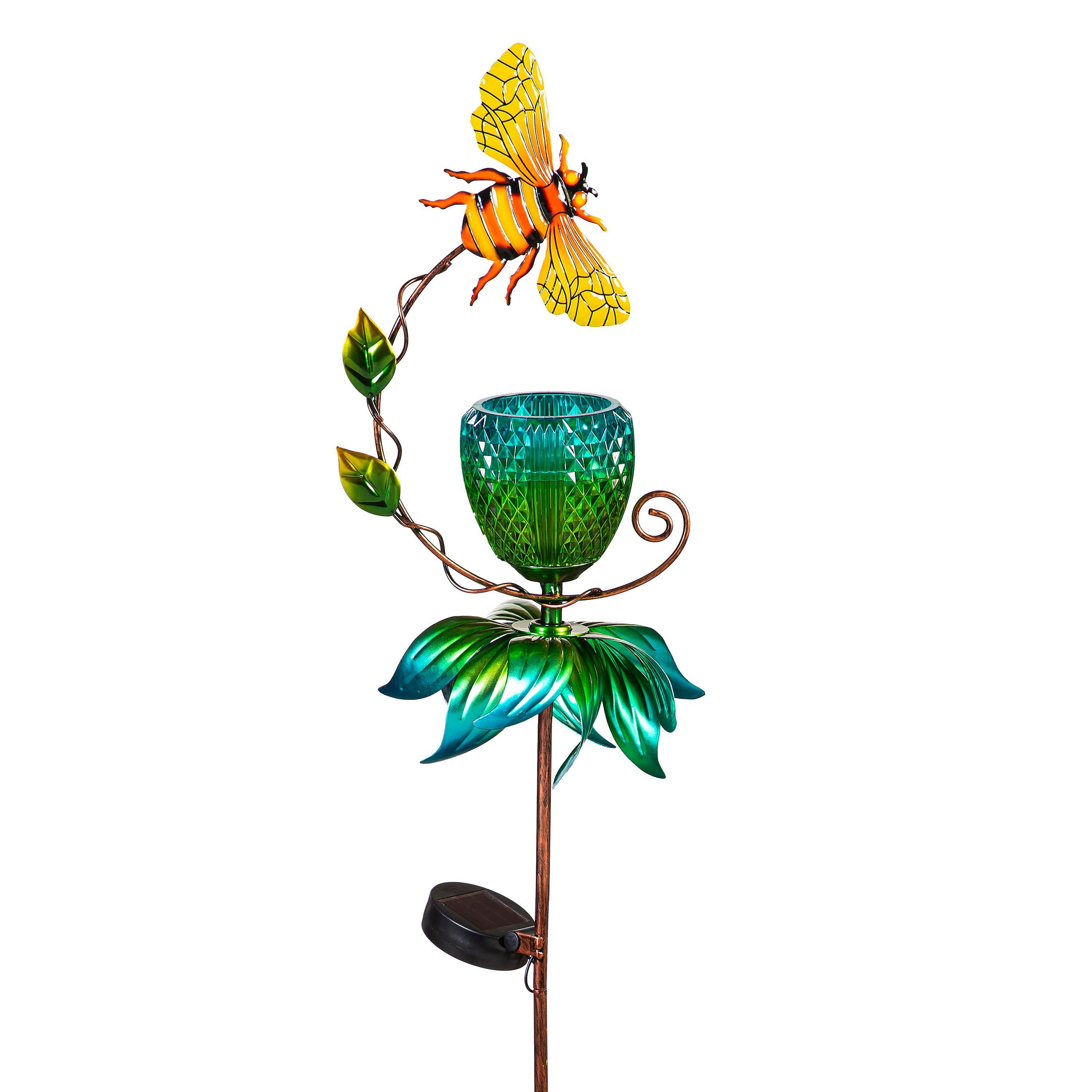 Add a charming touch to gardens, yards, or pathways with this solar garden stake. It features a beautiful bee design. It's the perfect addition to any outdoor space for an extra dose of color.