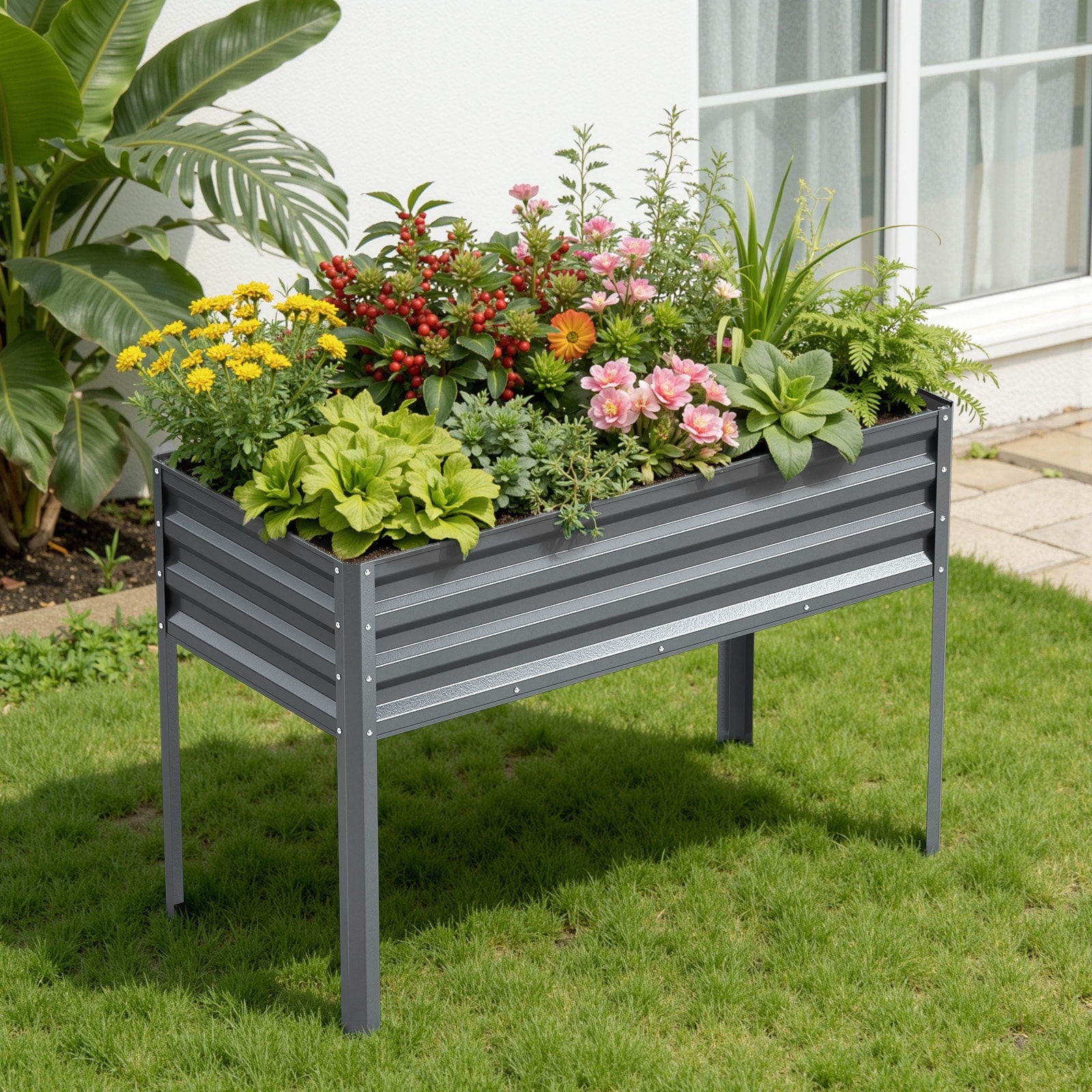 Description Experience effortless gardening with this elevated galvanized raised garden bed on sturdy legs.