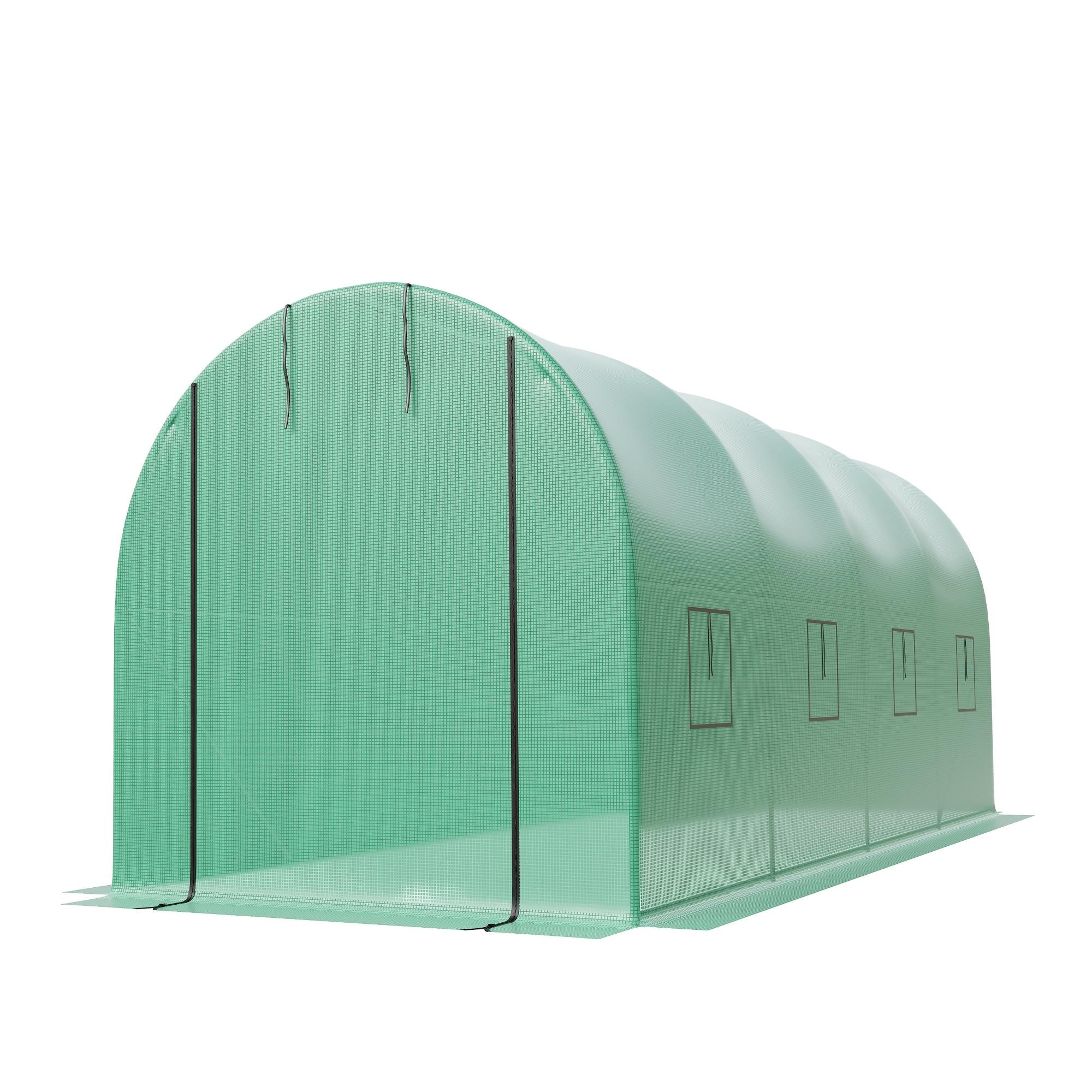 Garvee Walk-in Tunnel Greenhouse, 15 x 6.5 x 6.5 ft, with 8 Vents & 1 Door, Green