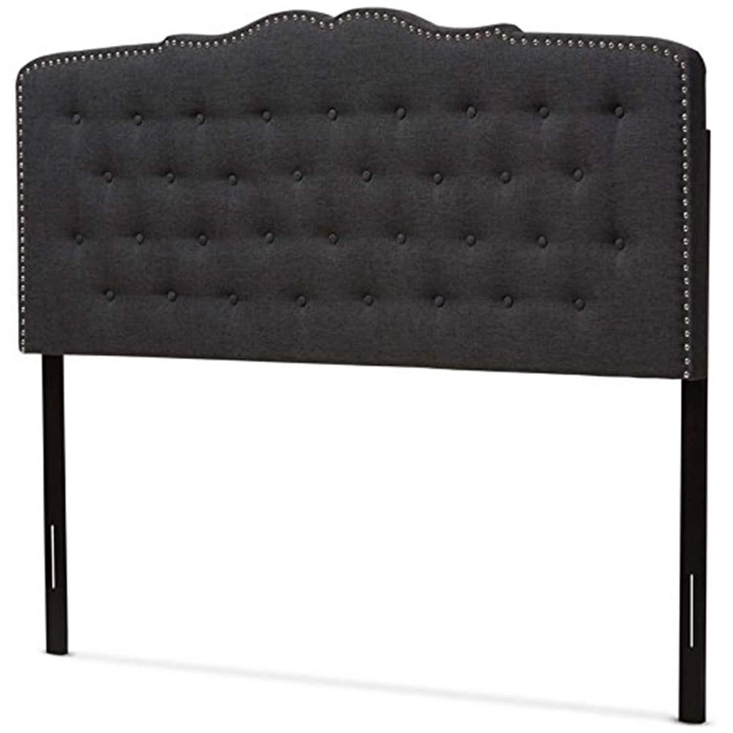 Dark Grey Queen Fabric Upholstered Headboard with Curved Top and Button Tufting for Modern Contemporary Style