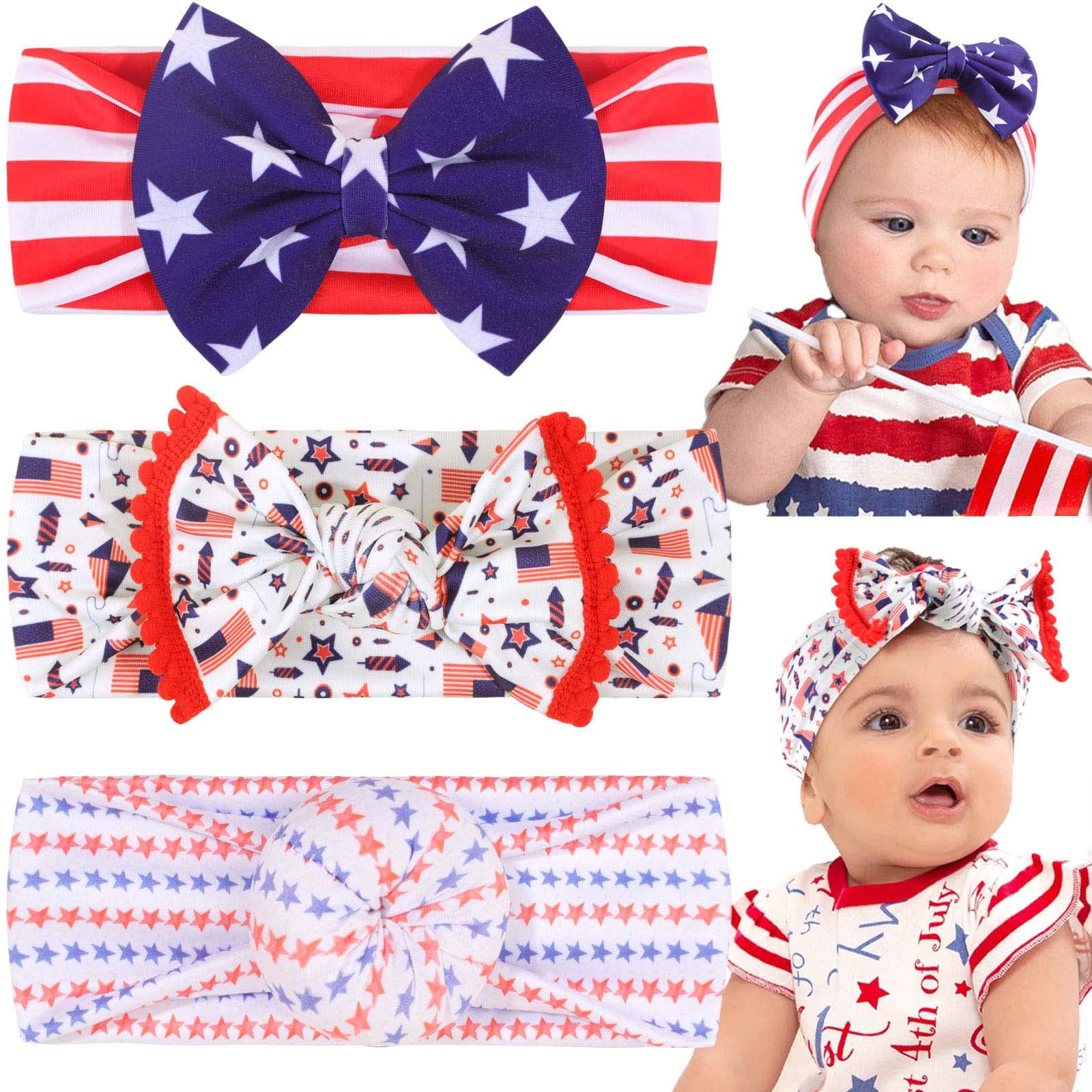 ๐บ๐ธใPATRIOTIC DESIGNใ- The baby headbands are patterned with stars and stripes in glittery red, blue and white, which in line with the Independence Day, Make your baby stand out from the crowd more dazzling. ๐บ๐ธใPACK OF 3ใ- There are 3 different bow headbands in one set. All toddle