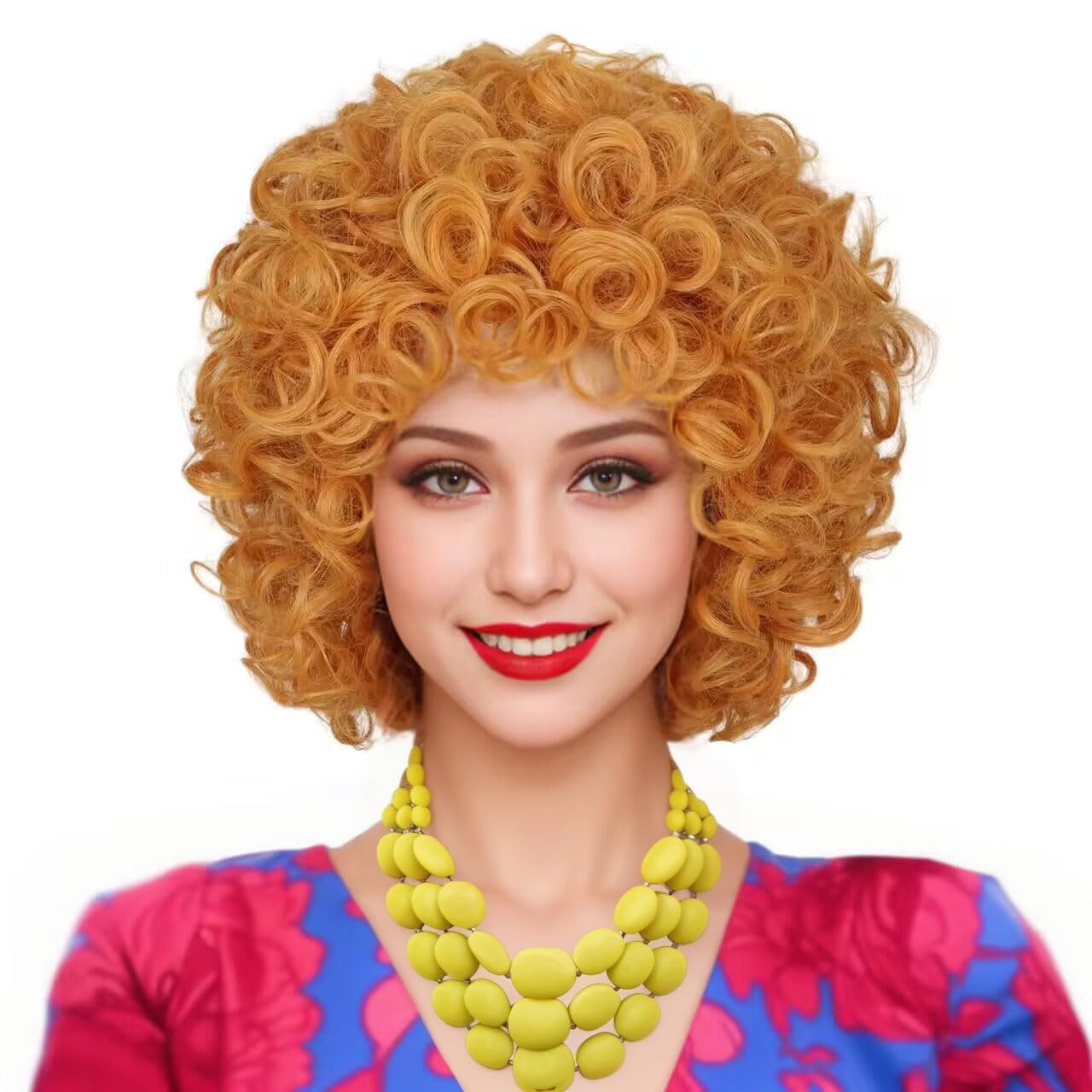ColorGround Short Fluffy Curly Orange Yellow Cosplay Wig for Women Halloween