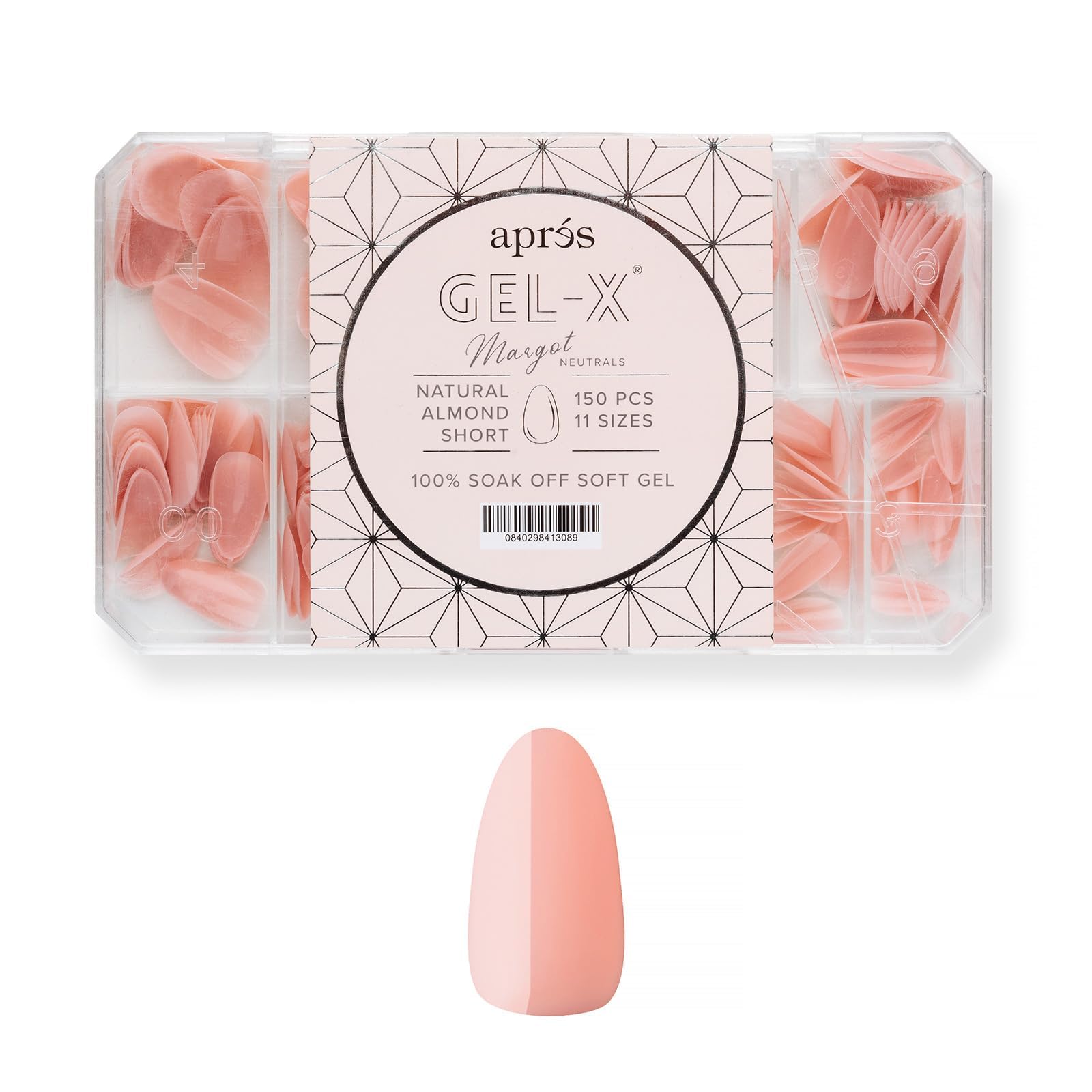 Apres Neutrals Gel-X Margot Box Of Press On Nails, 11 Sizes 00-9, Soft Gel Nail Tip Box (150pcs) (Almond Short, 150)