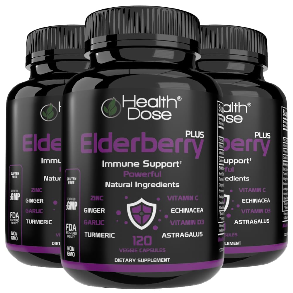 Health Dose Elderberry Plus Capsules – Immune Support Supplement with Vitamins C, D3, Zinc, Selenium & 11 Ingredients for Year-Round Wellness – 120