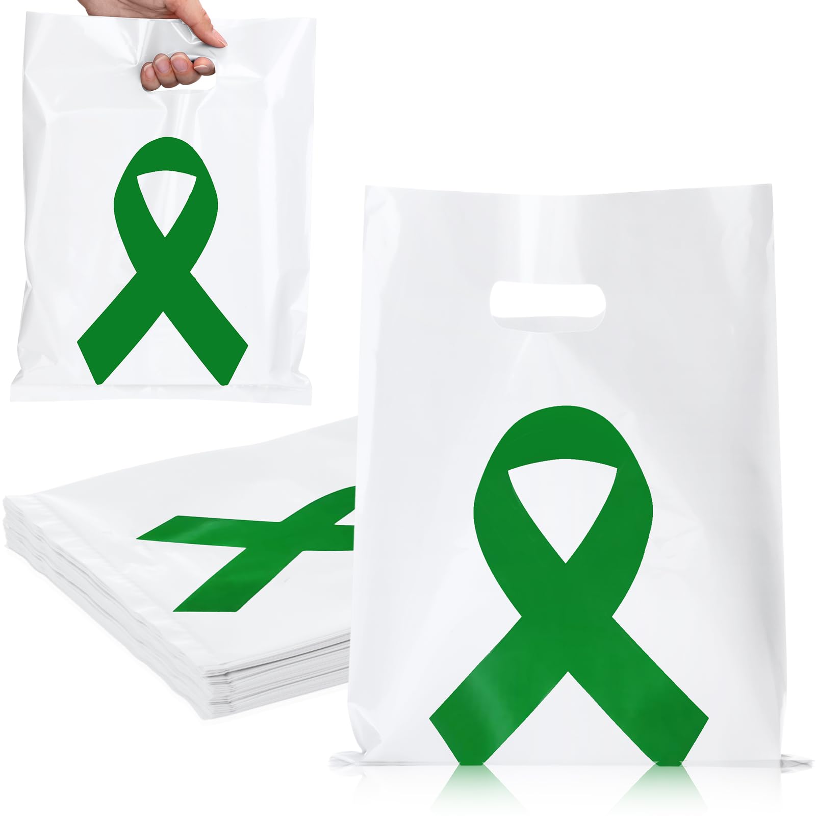 Kolldenn 50 Pcs Cancer Awareness Bags Ribbon Cancer Awareness Gift Bags with Handle Merchandise for Fundraiser Event Supplies(Green)
