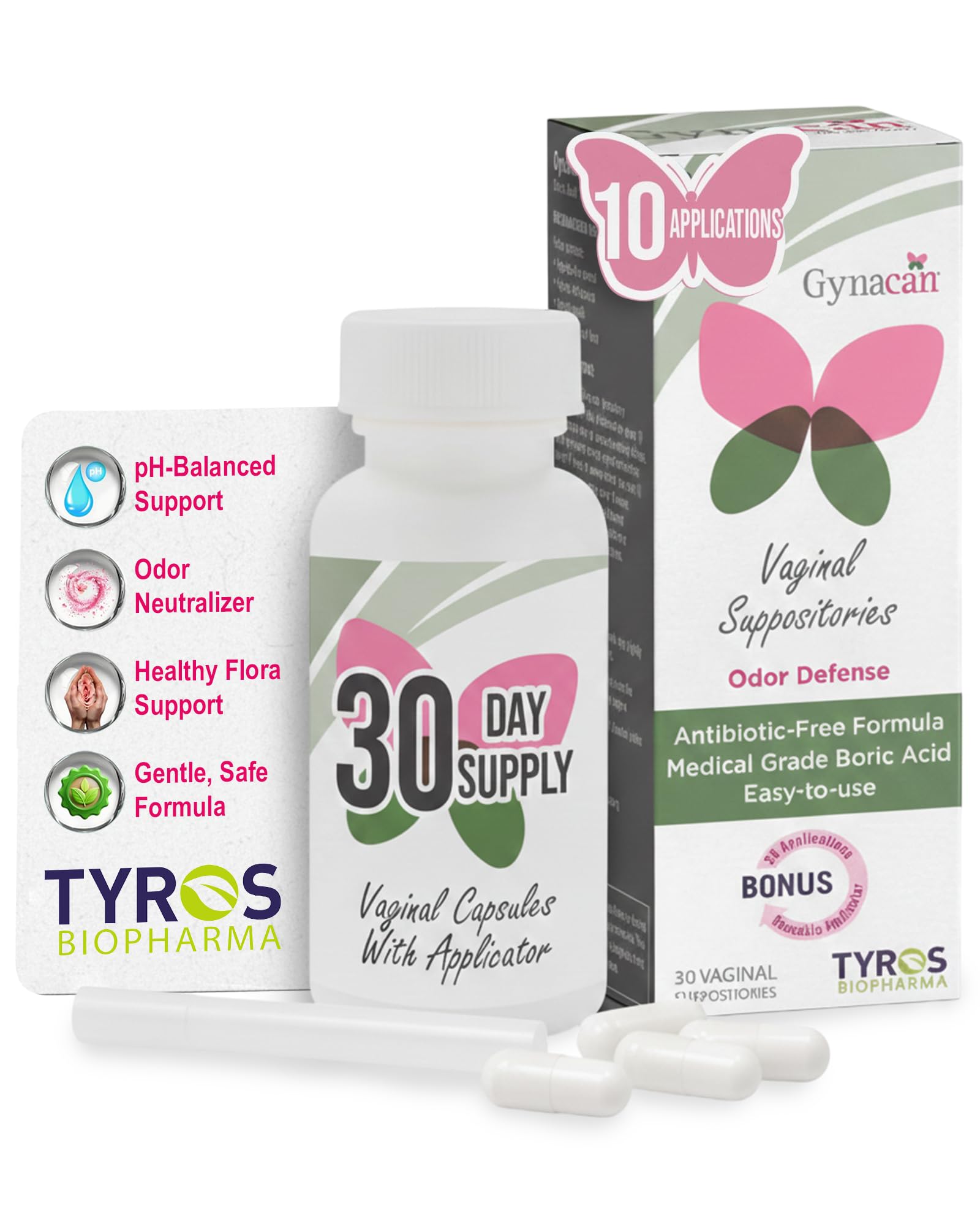 Gynacan Boric Acid Vaginal Suppositories Advanced Feminine pH Balance Support, Odor Control & Itch Relief, Pure & Gentle Intimate Care, Easy-Insert