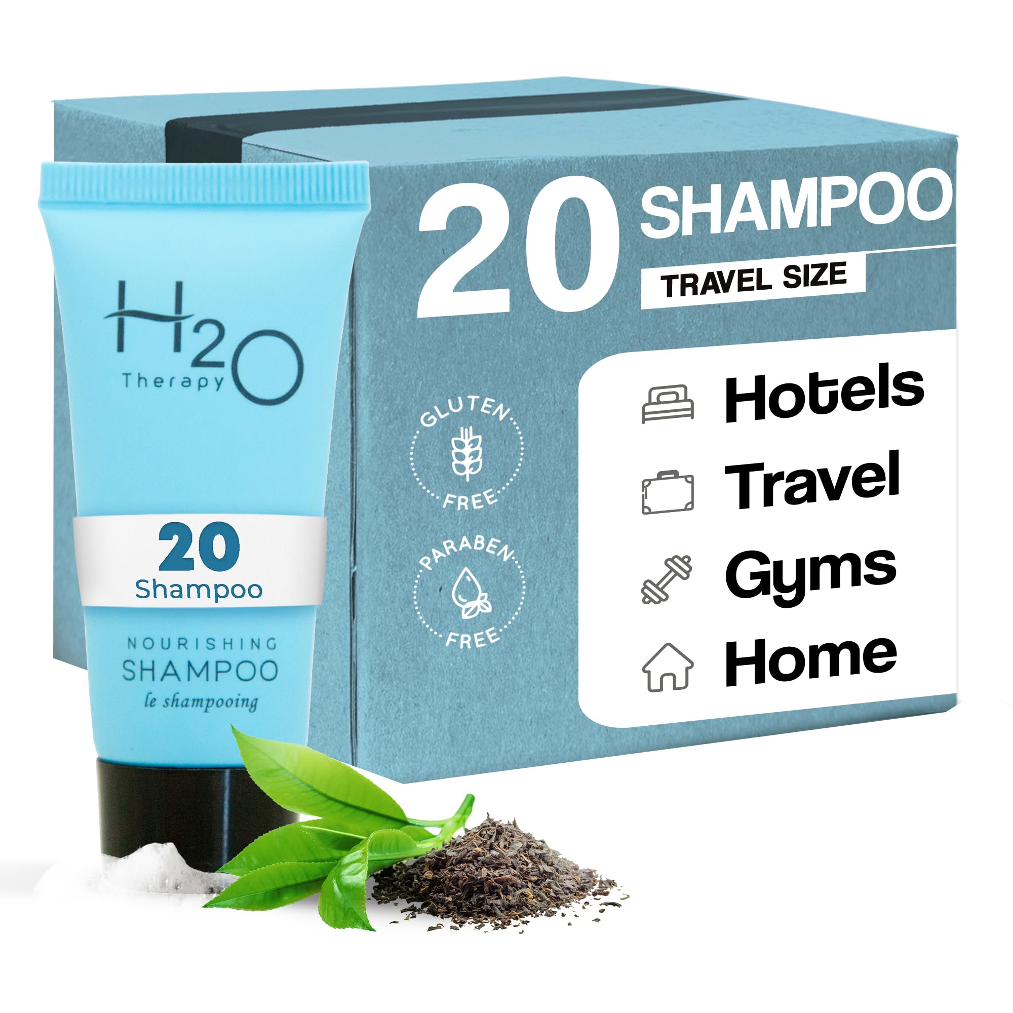 H2O Therapy Travel Size Hotel Shampoo 20 Count 0.85 oz Bottles Guest Amenities for Hotels Vacation Rentals and Short Term Rentals Paraben Free White