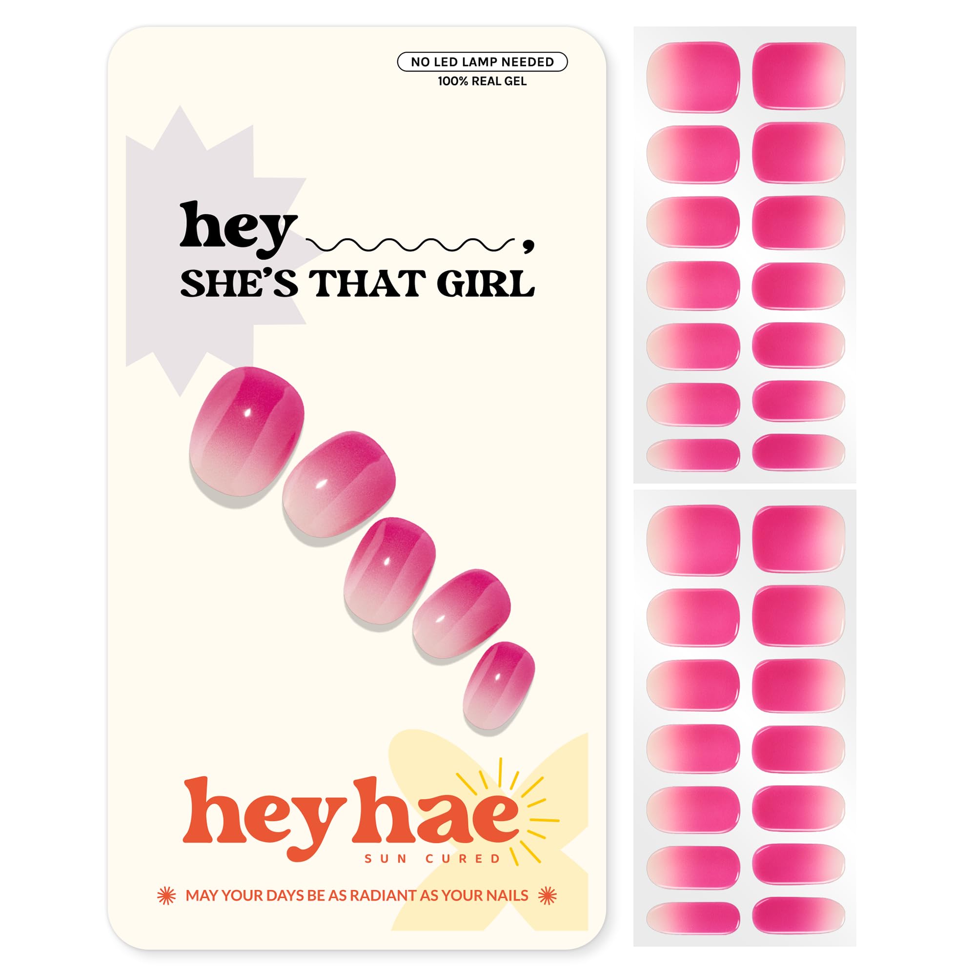 Heyhae Semi Cured Gel Nail Strips | No LED Lamp Needed |Pink, Ombre | Easy Apply & Remove, Salon Quality | Includes 28 Strips, 2 Prep Pads, Nail File