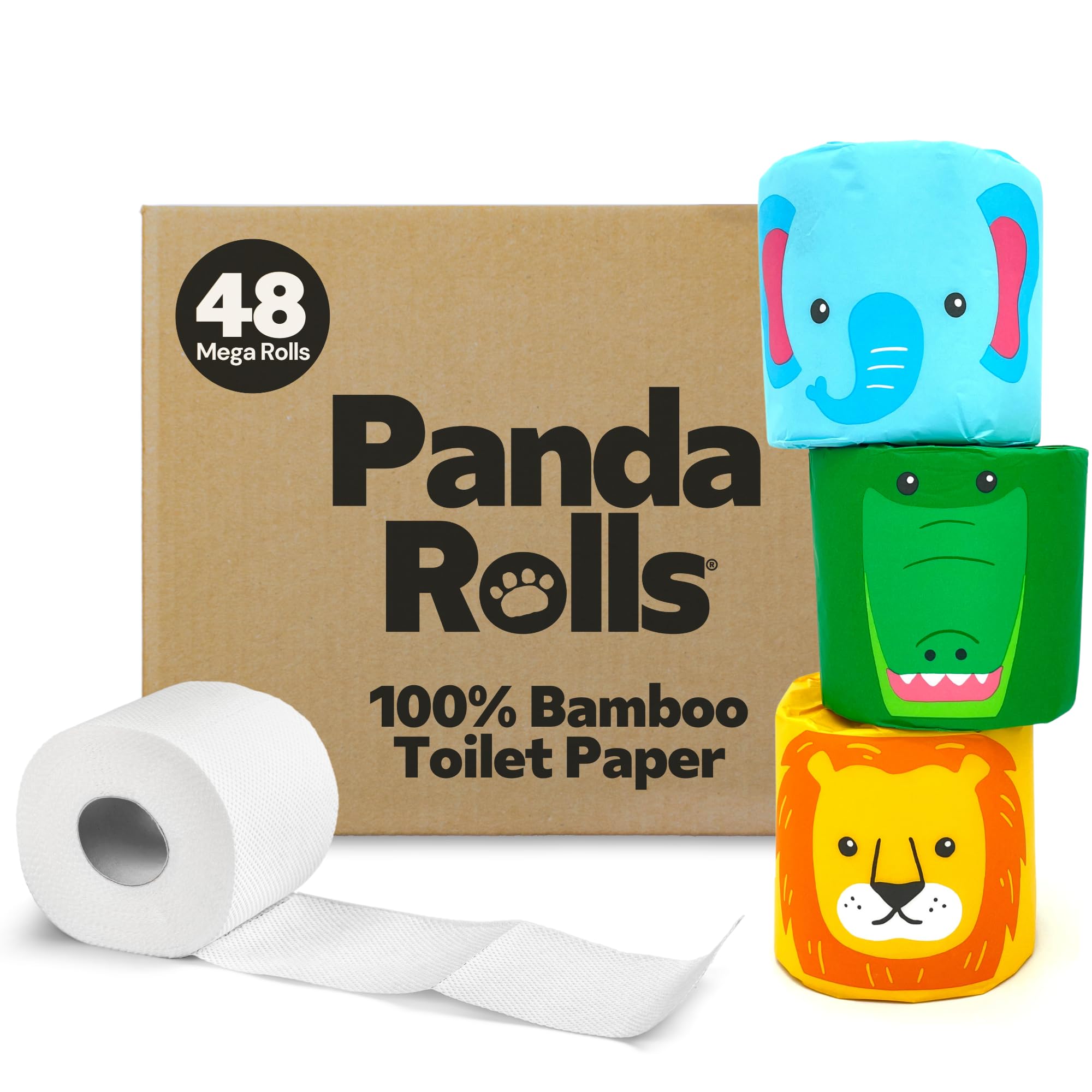 Panda Rolls 100% Bamboo Toilet Paper 3 Ply - Organic Toilet TIssue - 48 Mega Rolls & 350 Sheets Per Roll - Plastic Free, FSC Certified, Septic Safe,