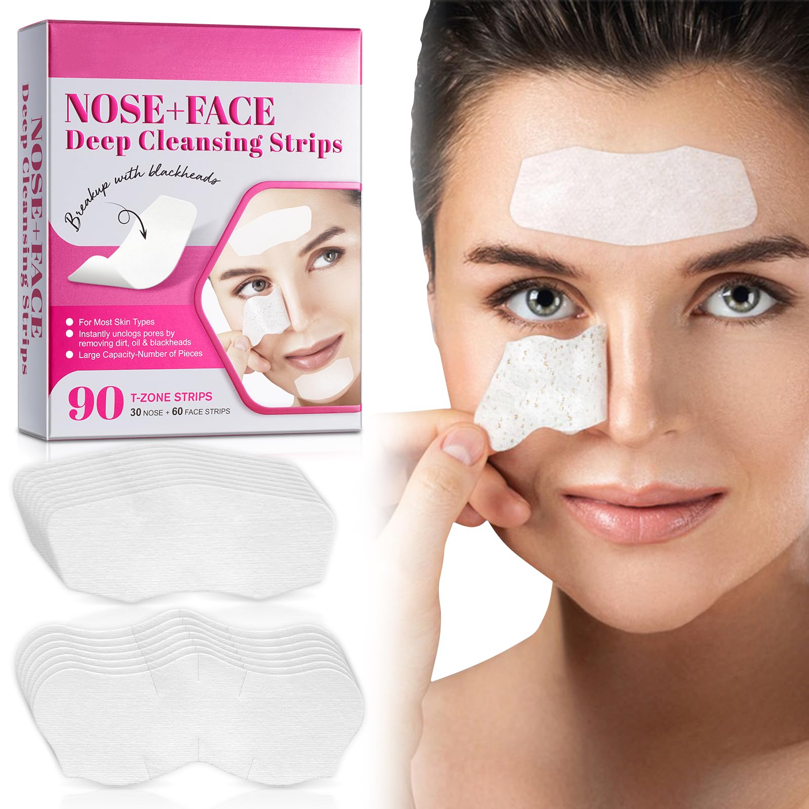 Effectively Blackhead Remover Strips-- Our blackhead remover strips effectively remove blackheads and pimple acne from the nose, pulling acne-producing dirt out of the pores, removing deep-seated dirt and blackheads, and balancing oil. Safe to use on all skin types--blackhead remover strips With Nat