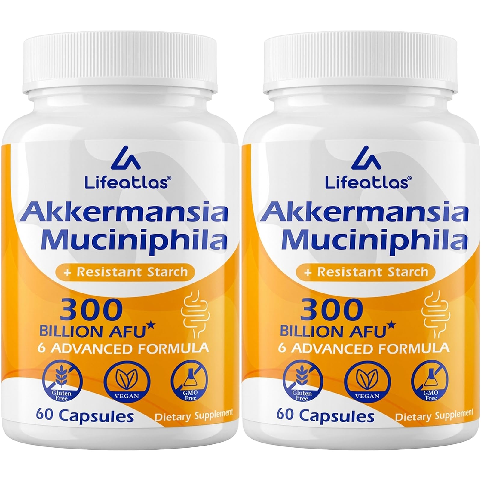 Lifeatlas Akkermansia Supplement Probiotic | Akkermansia with 300 Billion AFU Akkermansia Probiotic, 6-in-1 Akkermansia Probiotics for Women and Men,