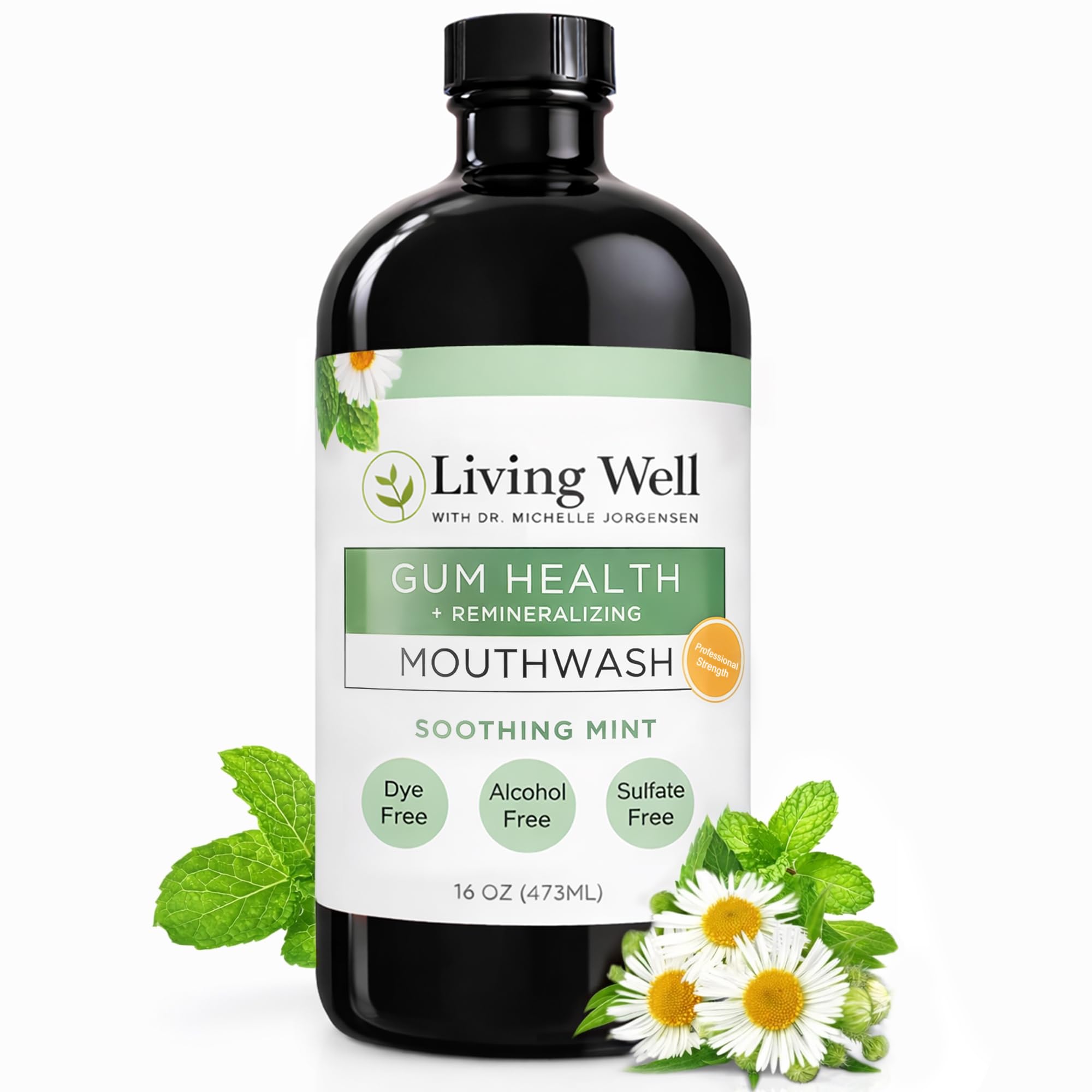Living Well with Dr. Michelle Remineralizing + Gum Health Mouthwash – Soothing Mint | Hydroxyapatite, Colloidal Silver | Alcohol-Free, Fluoride-Free,