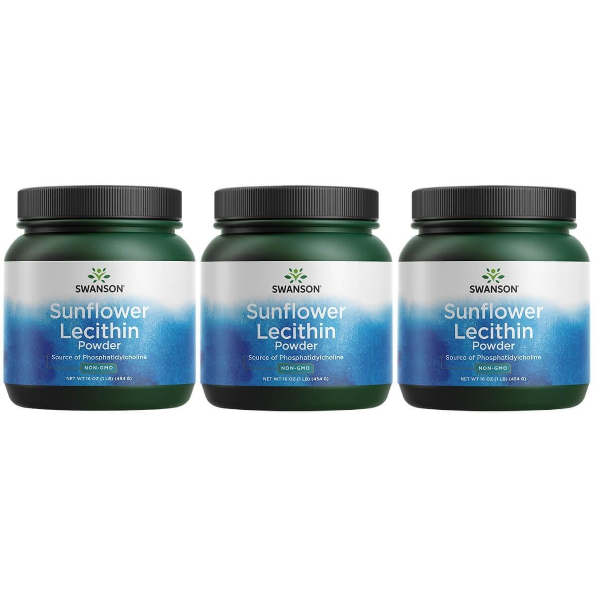 Swanson Sunflower Lecithin Brain Health Nervous System Support Non-GMO Soy-Free Vegetarian 16 oz (1lb) 454 gram Powder (3 Pack)