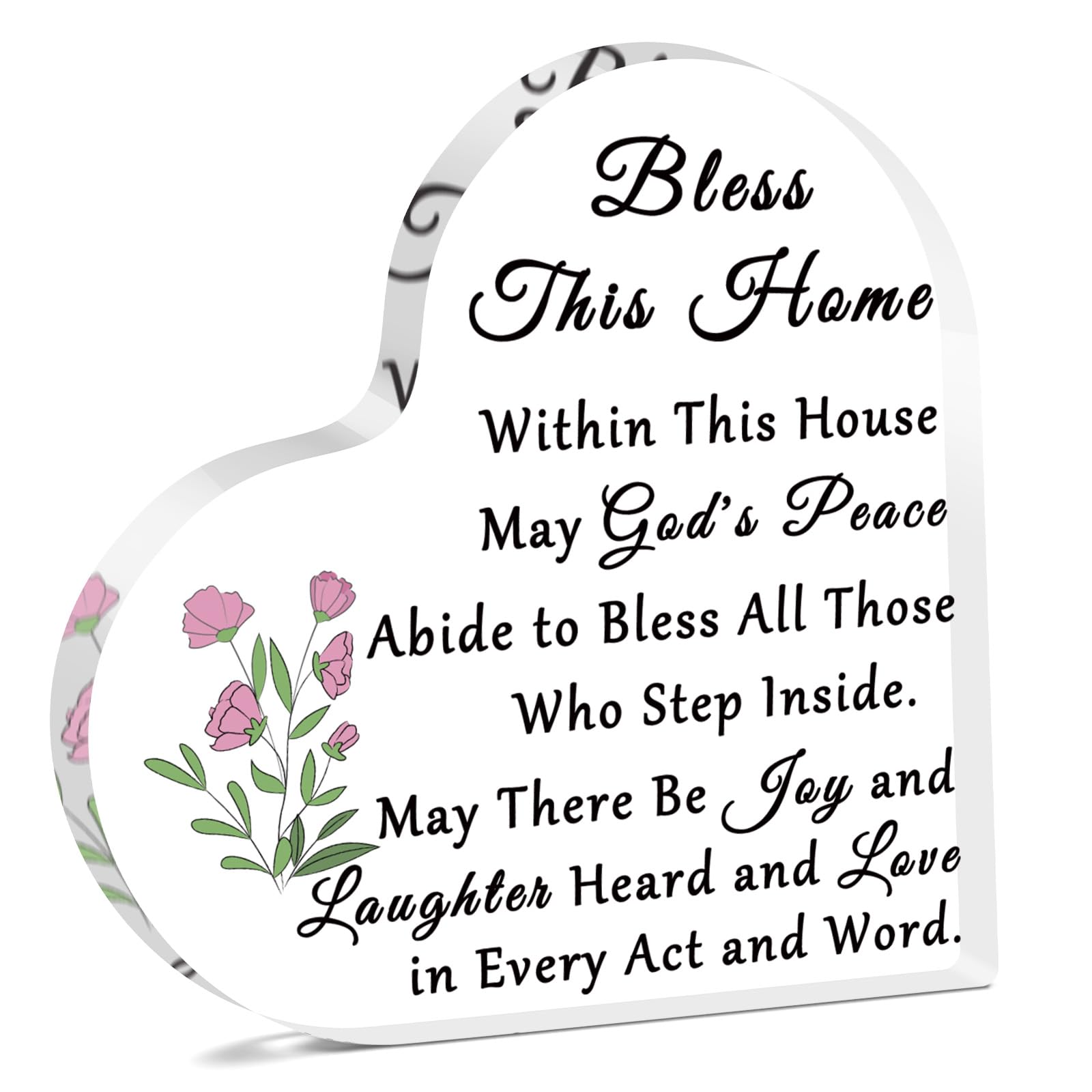 House Warming Gift Religious Acrylic Sign for Desk Inspirational Acrylic Heart Keepsake for New Home Owners Christian Desk Decor Signs New Home Gift