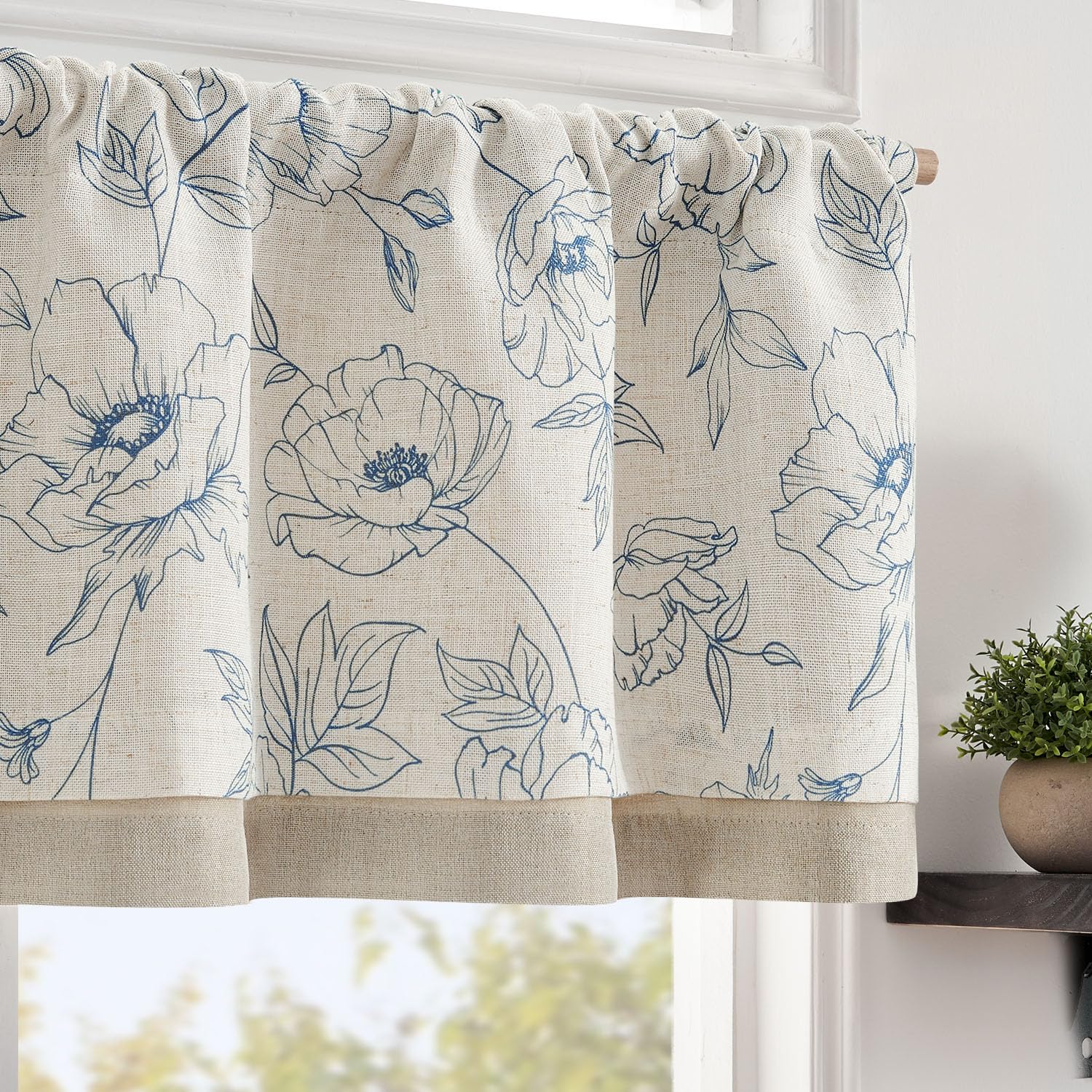 Linen Blend Valance: Immerse your home in the essence of farmhouse style with our 50" x 16" valance. The linen blend fabric adds rustic aesthetics that complements kitchen windows. 3-inch pole pocket ccommodates cafe curtain rods under 1 4/5" diameter curtain rod. Floral Valance Window Treatments: F