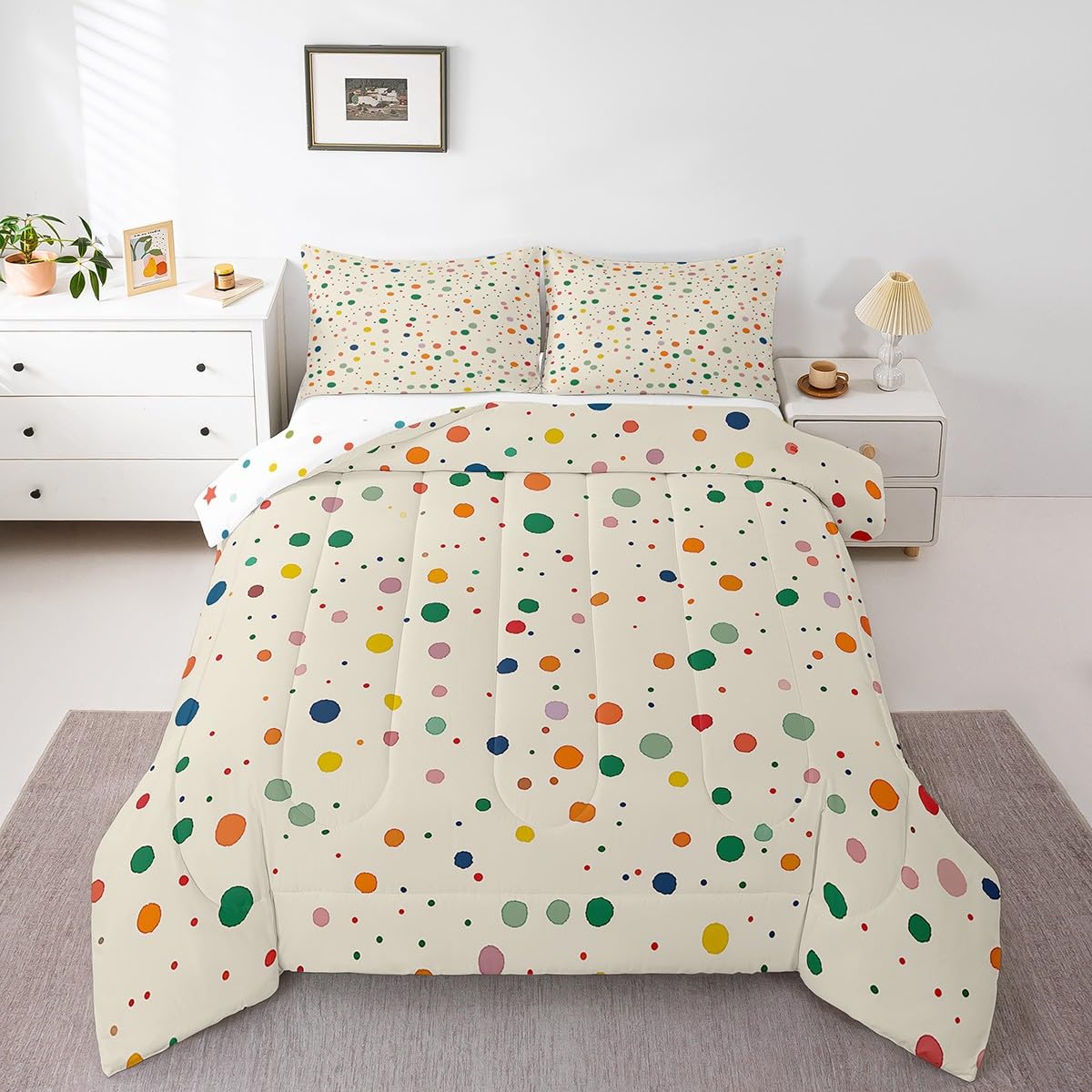 Tie Dye Comforter Dots Watercolor Bedding Sets Colorful Abstract Art Comforter Set for Kids Girls Women Rainbow Polka Dot Print Duvet Sets with 1