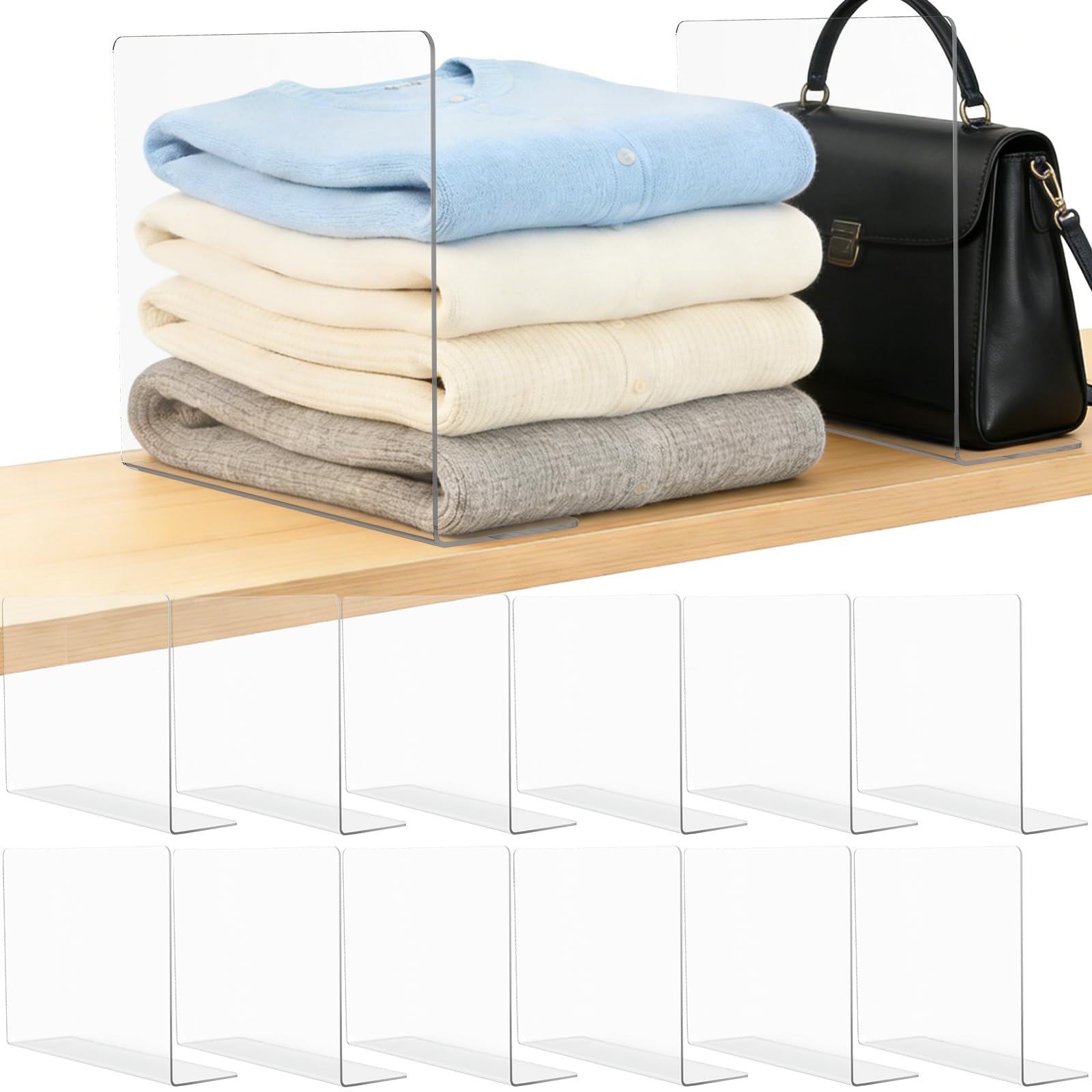 Lebouri Shelf Dividers for Closet Organization: 12" Tall x 12" Deep Acrylic Shelf Dividers for Clothes Sweater Purse - Clear Closet Organizers and