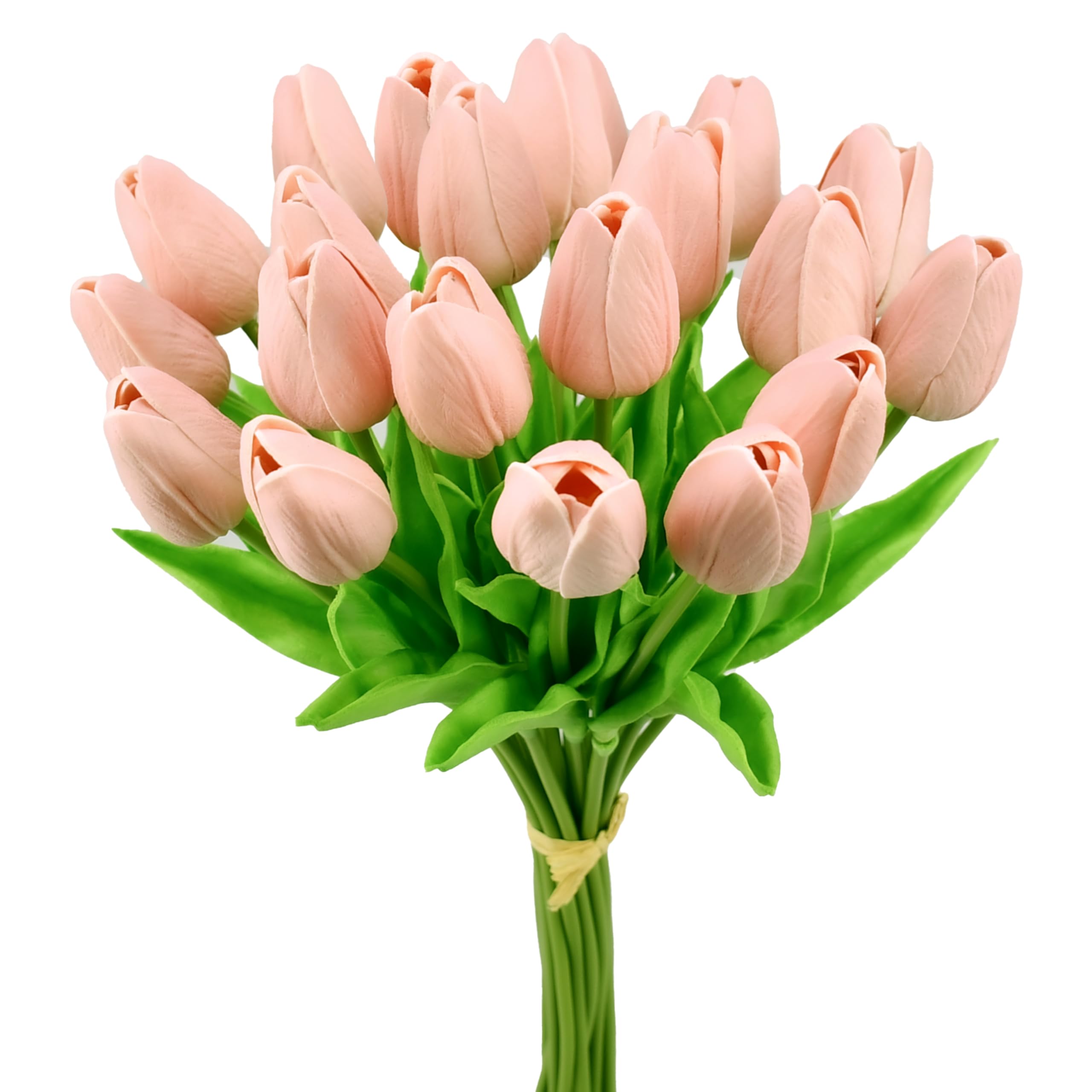 90% Polyurethane, 10% Plastic LIFELIKE FEEL: PREMIUM PU FOR UNMATCHED REALISM-Crafted from high-grade Polyurethane (PU), Mandy's tulips feature a velvety, life-like feel that mimics the organic moisture of fresh blooms. This material is specifically chosen to replicate the succulent texture of real