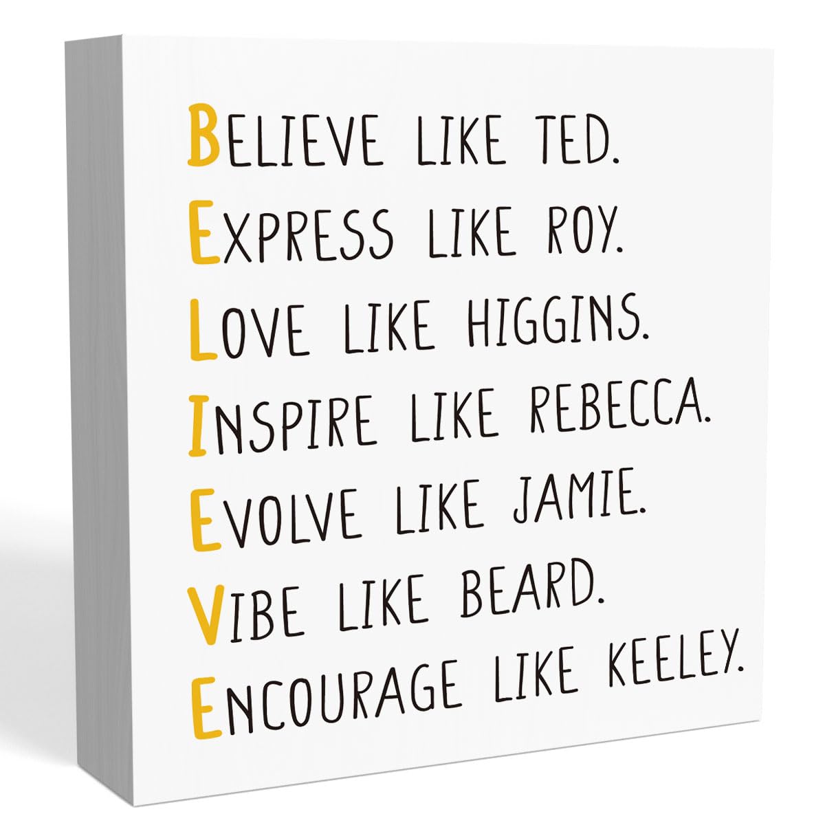Inspirational Ted Gift Lasso Believe Like Ted Sign - Home Office Desk Cubicle Shelf Decor - Bedroom Man Cave TV Show Decor - Soccer Football Coach