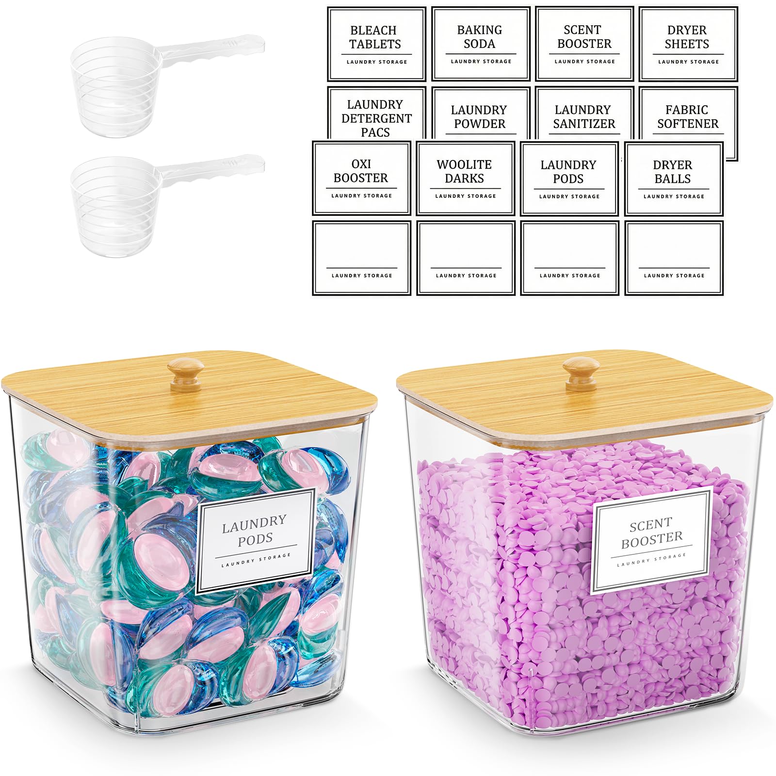 HomePekite 2 Pack Laundry Pods Container,Laundry Room Organization and Storage Containers with Wooden Lids & Labels Large Laundry Detergent Container
