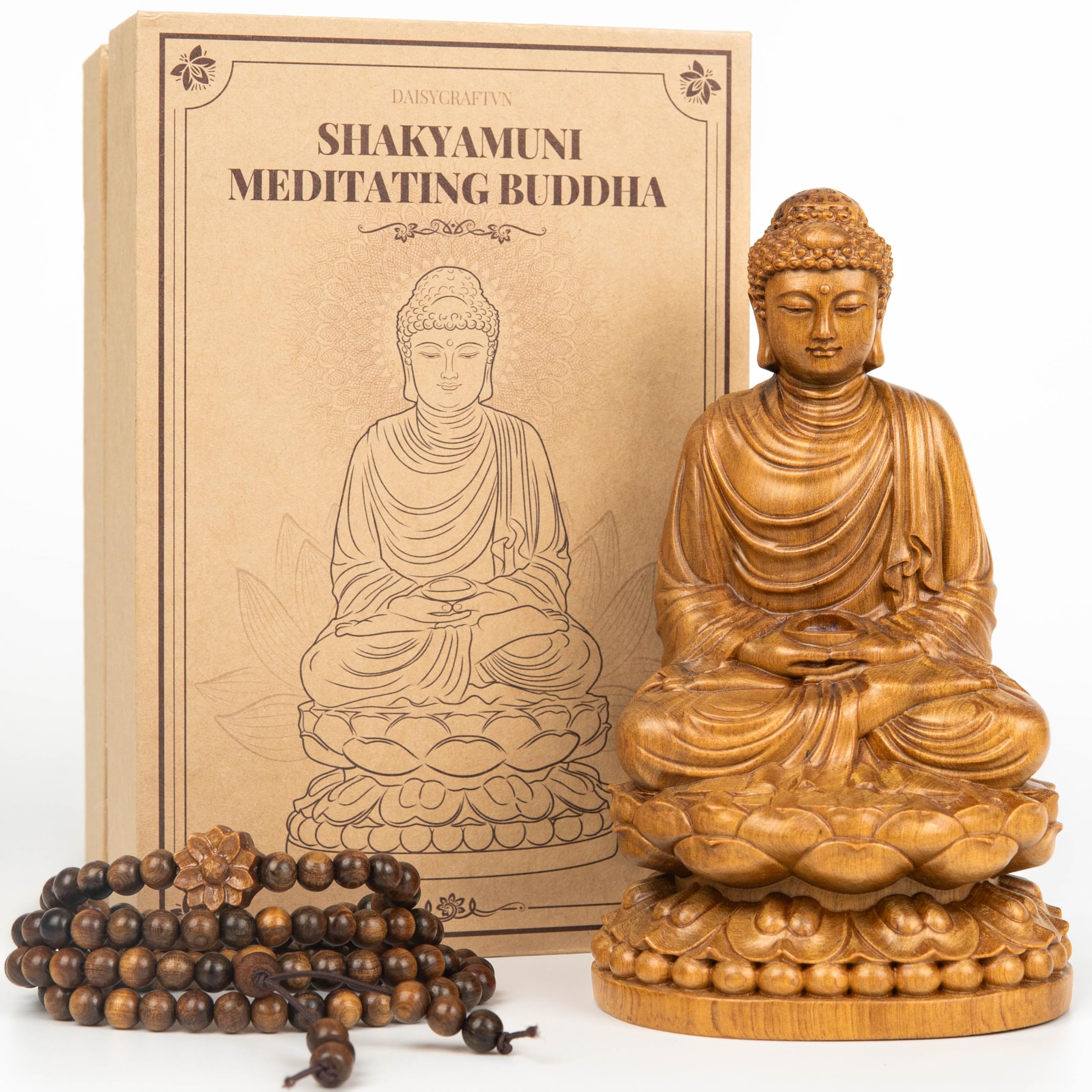 DAISYCRAFTVN Buddha Statue – Wooden Shakyamuni Buddha for Indoor Home Altar, Meditation Room Decor, Buddhist Spiritual Gifts